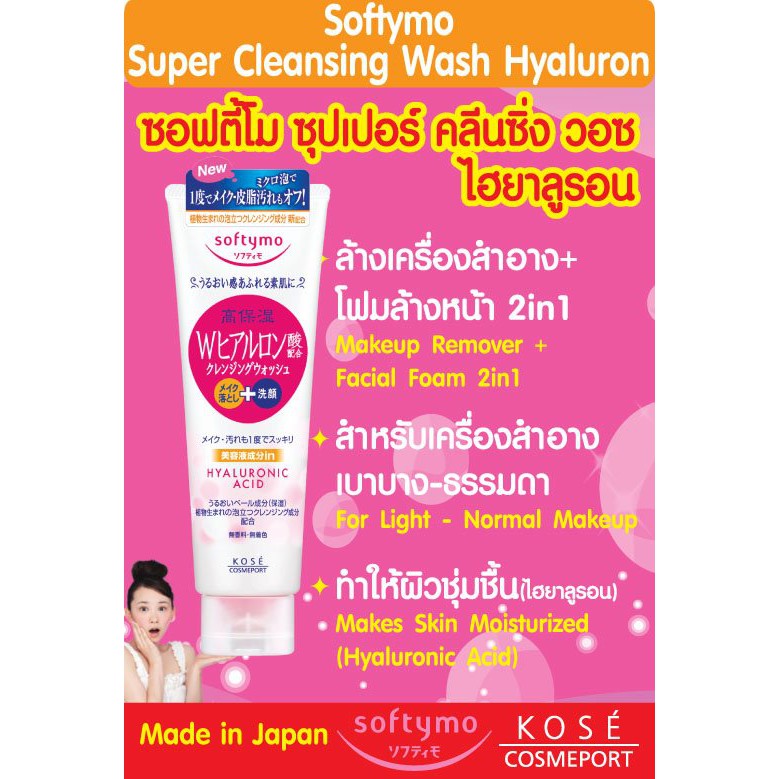 KOSE Softymo Super Cleansing Wash Foam 190g 2in1 ซอฟตี้โม คลีนซิ่ง โฟมล้างหน้า made in Japan