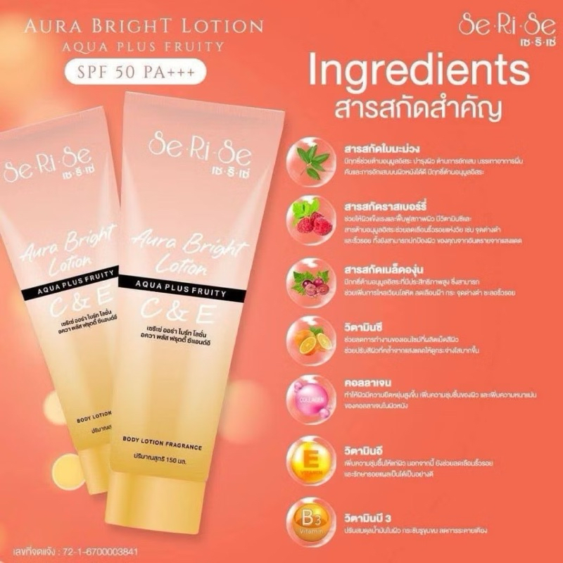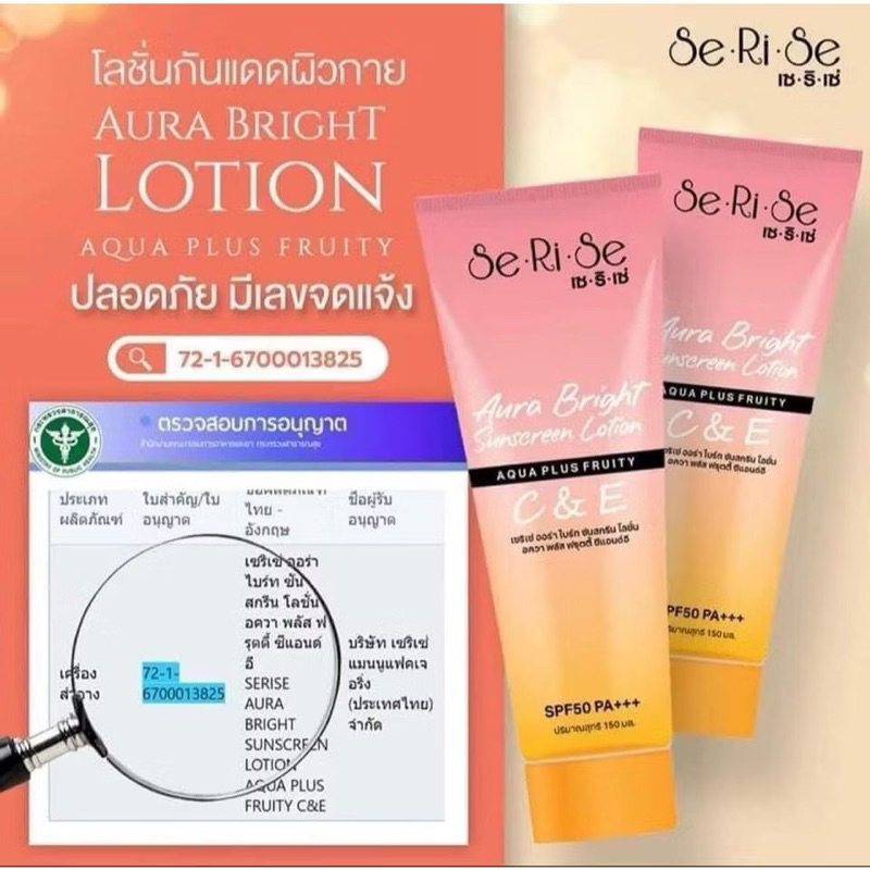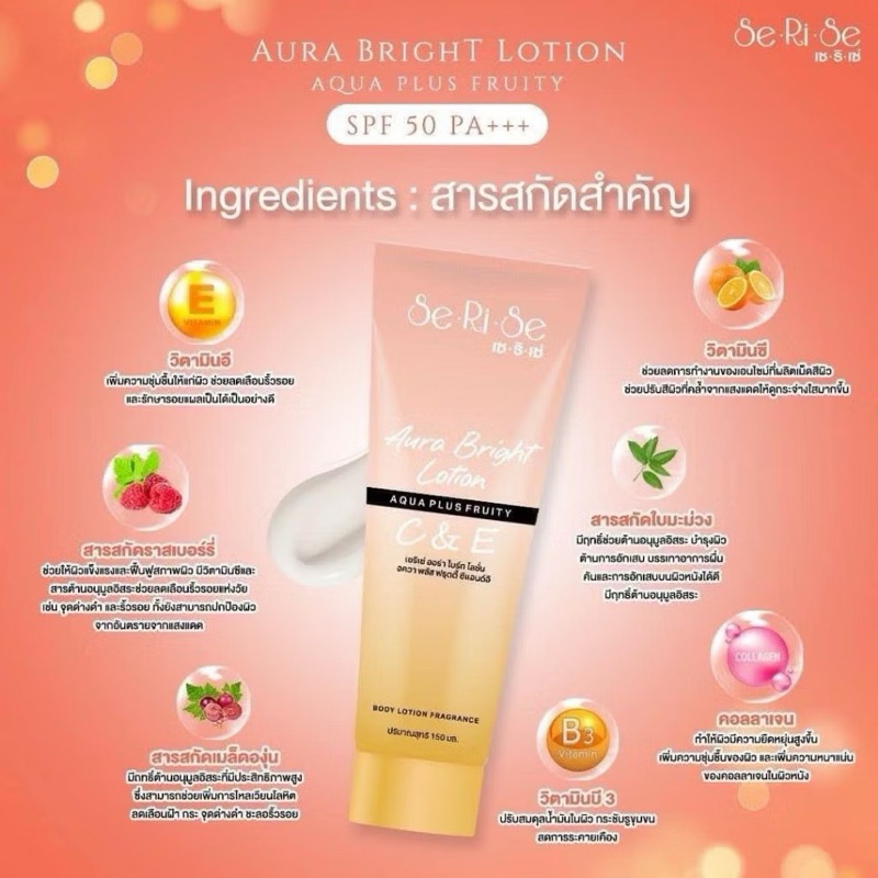 โลชั่นกันแดด เซริเซ่ Se•Ri•Se Aura Bright Sunscreen Lotion SPF50 PA+++ (ขนาด 150 กรัม)
