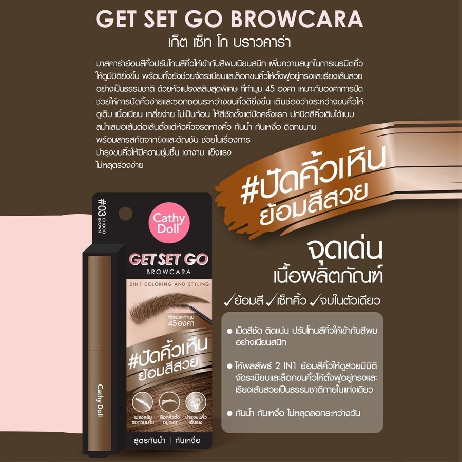 Cathy Doll Get Set Go Browcara เคที่ดอลล์ บราวคาร่า มาสคาร่าคิ้ว สีสวย ที่เขียนคิ้วกันน้ำ 3.2g
