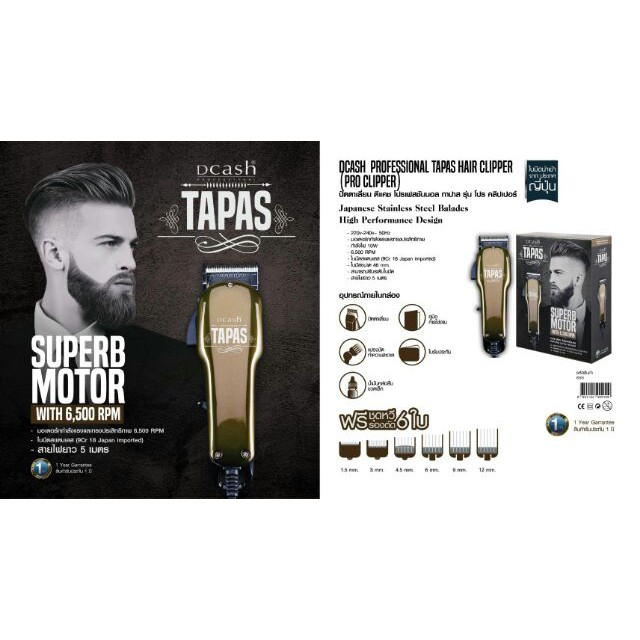 Dcash ทาปาส ดีแคช โปรเฟสชั่นนอล ปัตตาเลี่ยน รุ่น โปร คลิปเปอร์ ฟรีชุดหวี รองตัด 6 ใบ