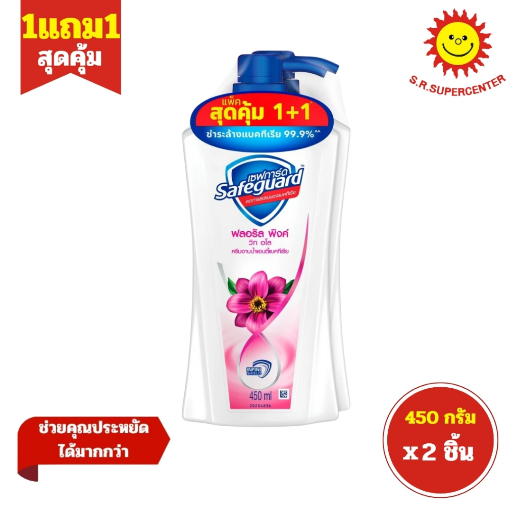 [ 1แถม1 ] Safeguard เซฟการ์ด ครีมอาบน้ำ แอนตี้แบคทีเรีย ขนาด 450 มล. (แพ็ค1+1) คละสูตร