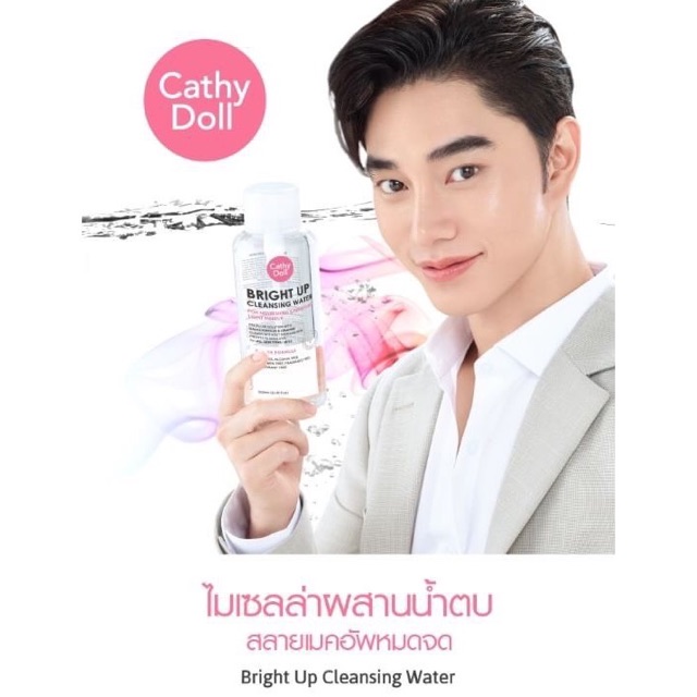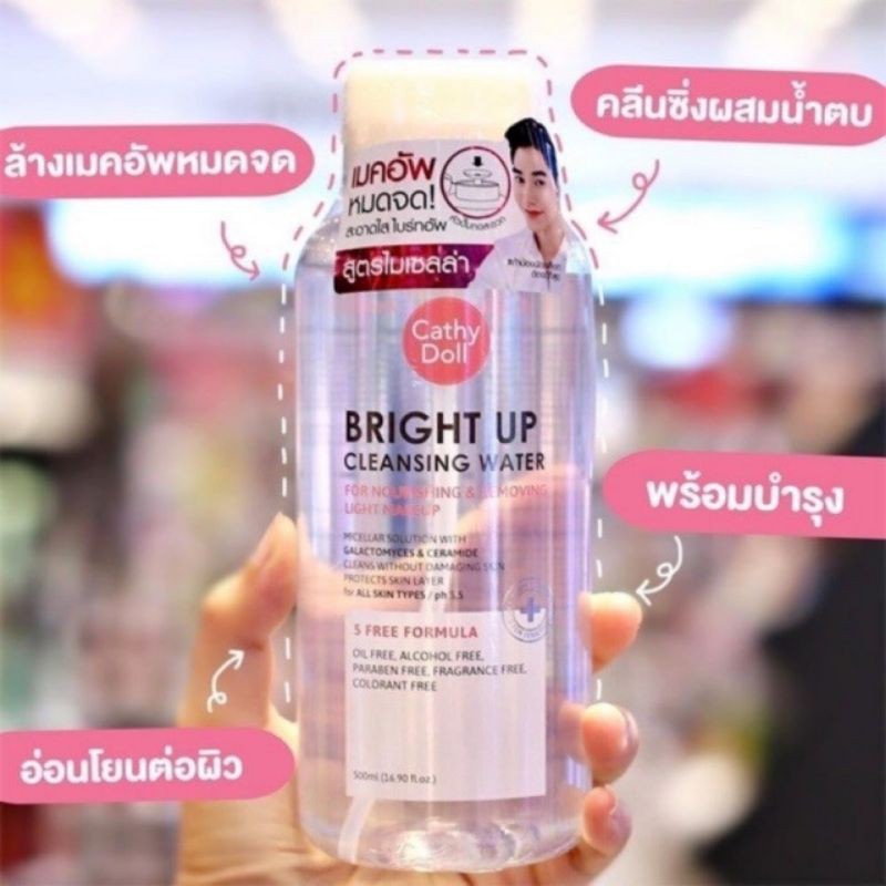 ส่งฟรี/มีไลฟ์ (ขวด)ผลิตภัณฑ์เช็ดเครื่องสำอาง (Cleansing Water) สูตรไมเซลลา+น้ำตบ Cathy Doll BRIGHT UP