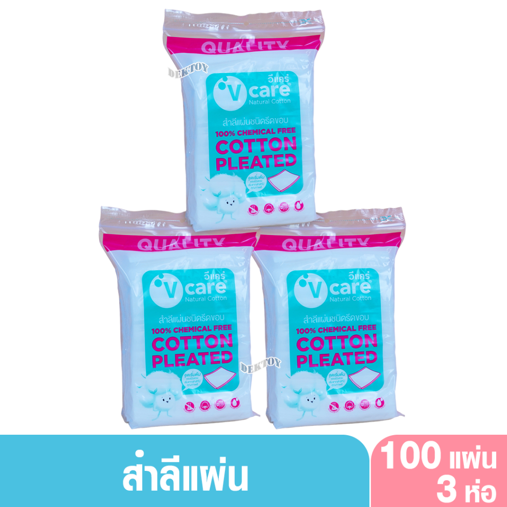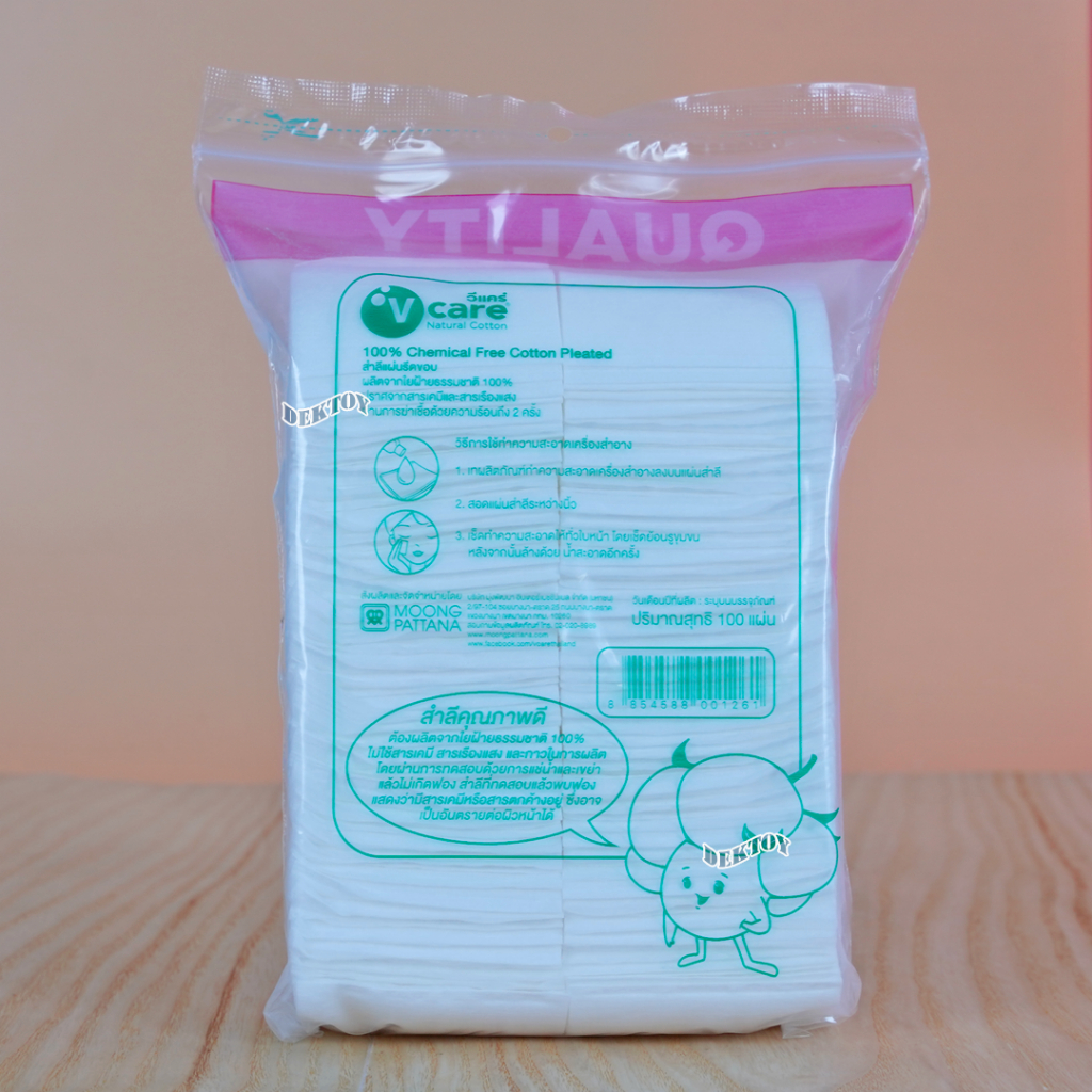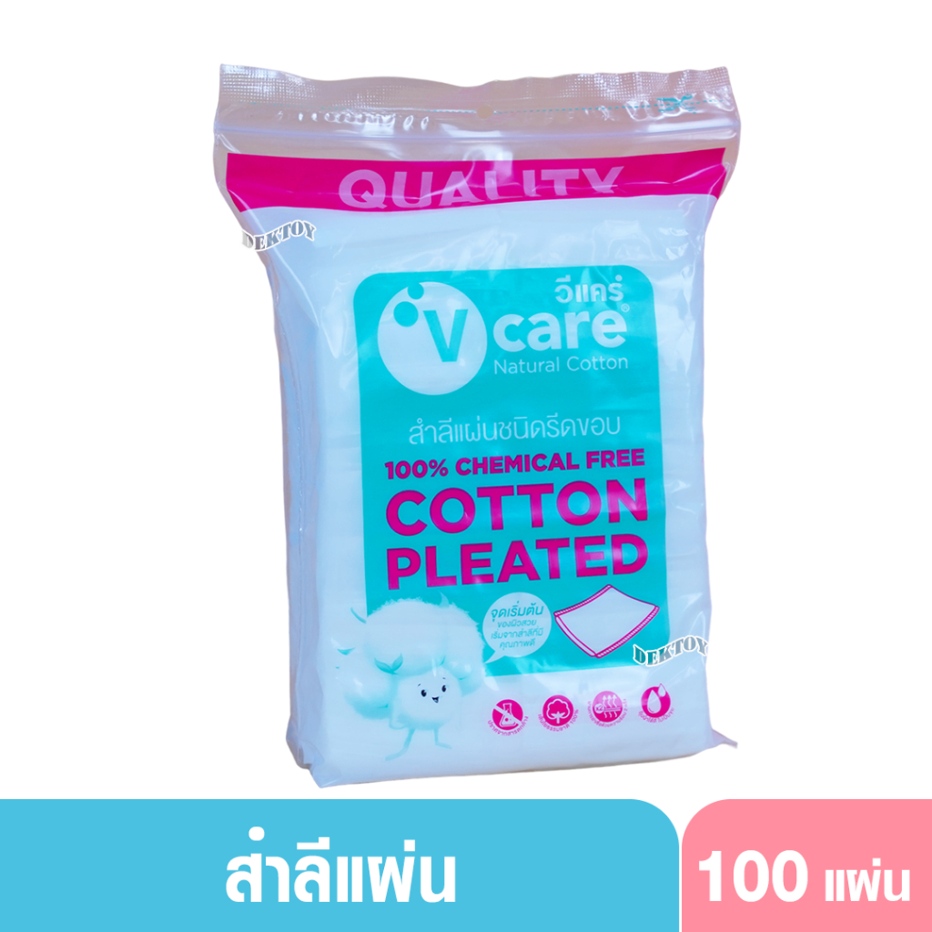V-Care วีแคร์ สำลีแผ่นชนิดรีดขอบ100แผ่น