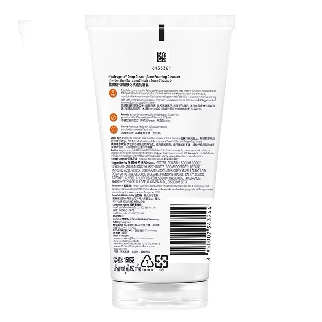 ✅ Neutrogena Deep Clean Acne Foaming Cleanser 150g นูโทรจีนา ดีพ คลีน แอคเน่ โฟมมิ่ง คลีนเซอร์ 150กรัม โฟมล้างหน้า