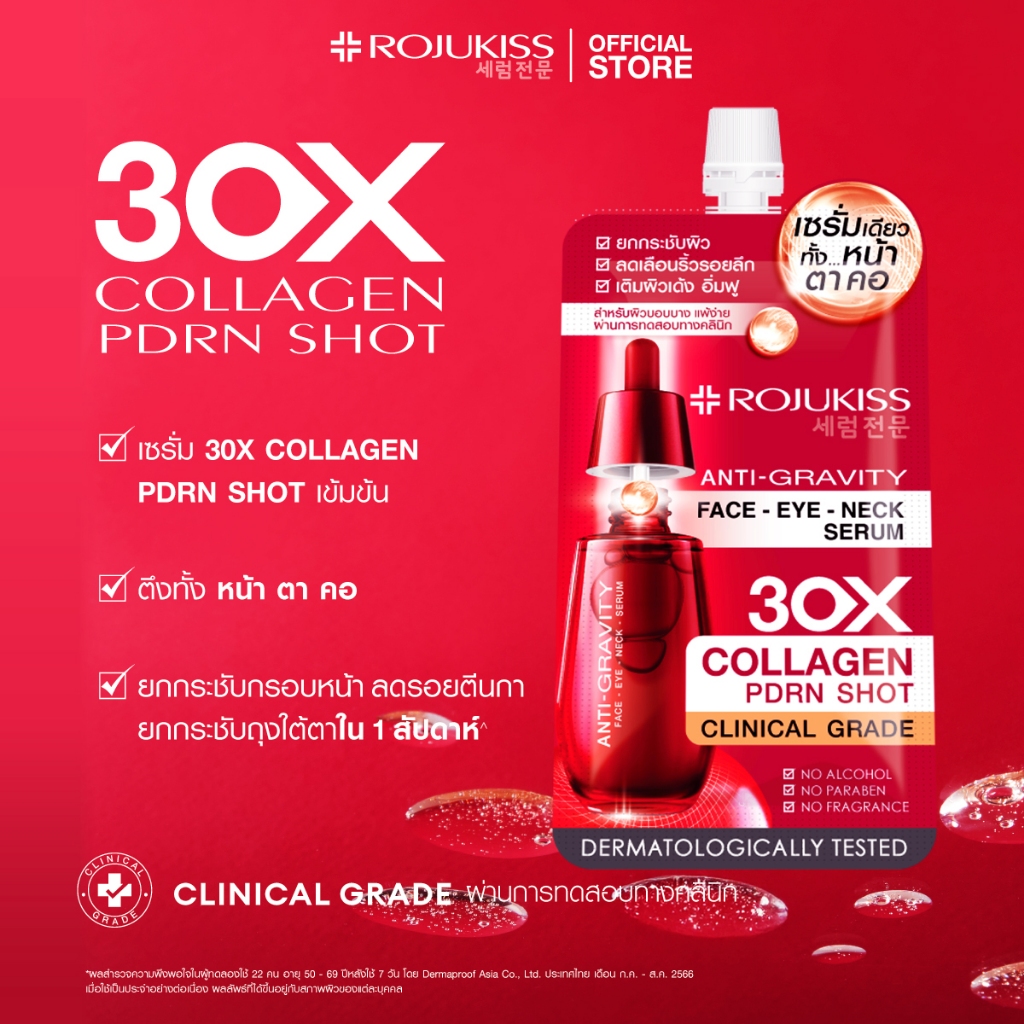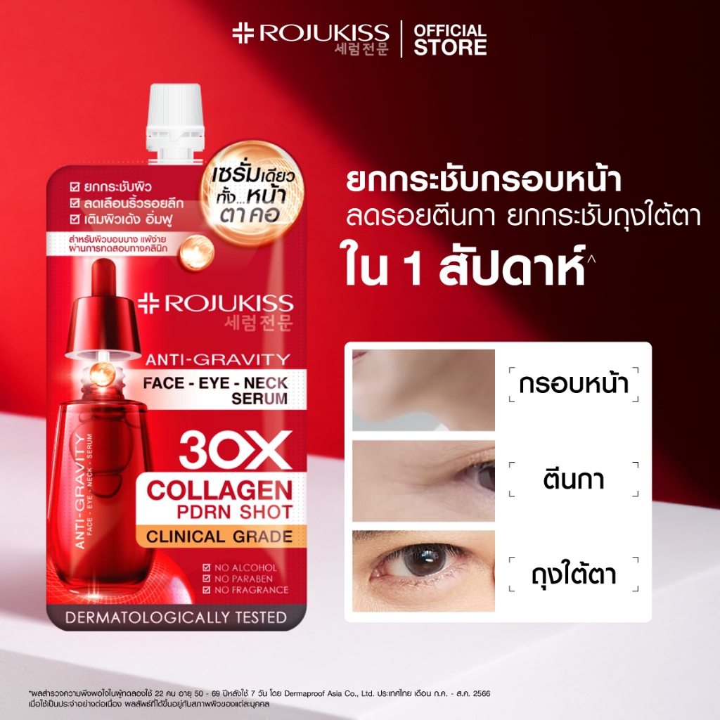 (ซอง)Rojukiss Face Eye Neck Serum 8ml โรจูคิส แอนติ-กราวิตี้ เฟส อาย เนค เซรั่ม 8ml
