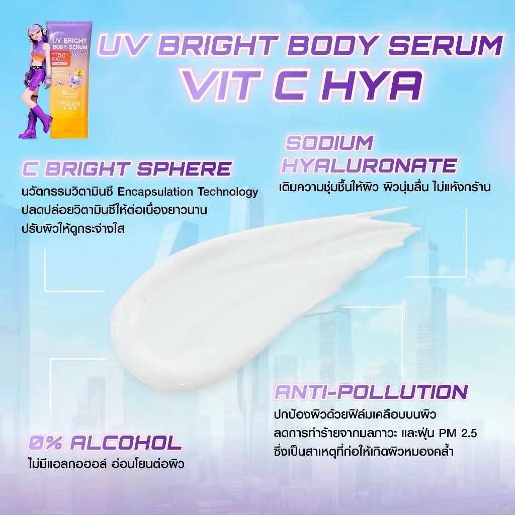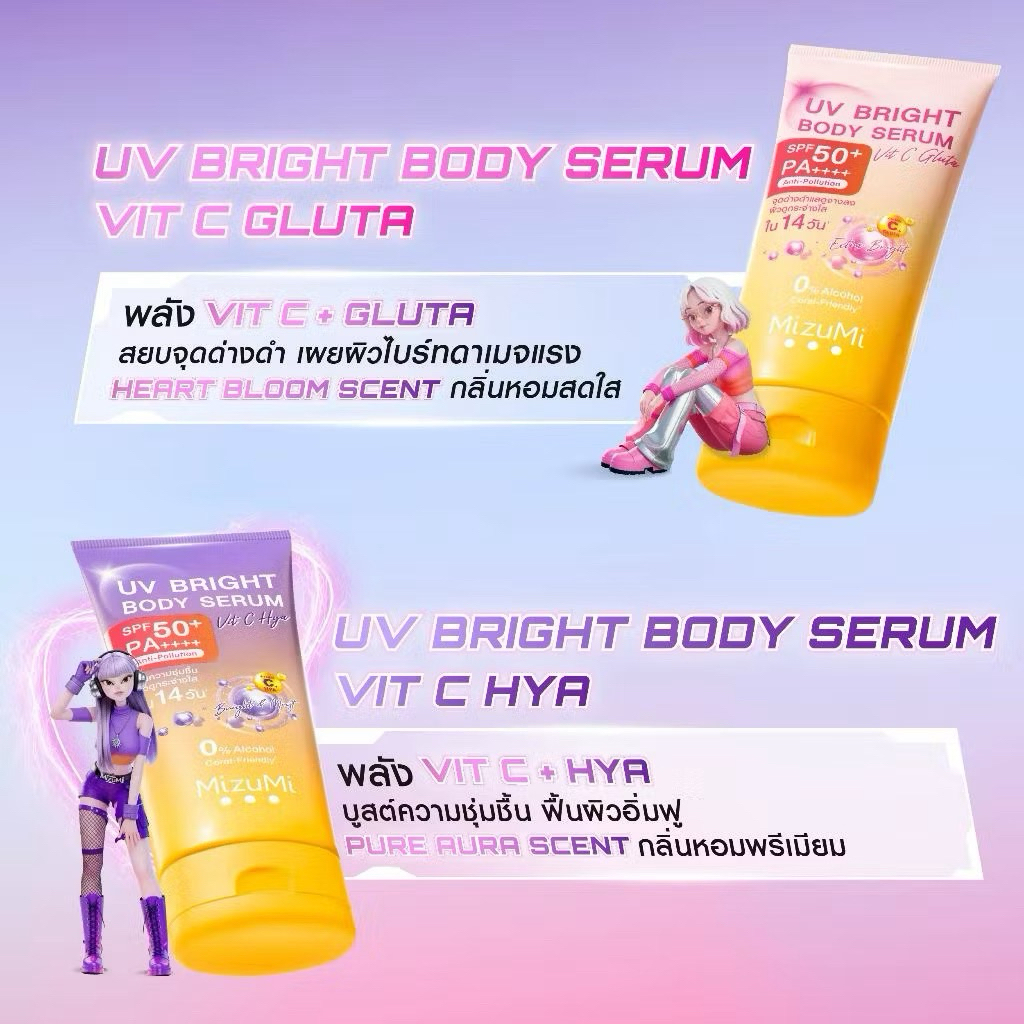 ส่งฟรี/มีไลฟ์ [แพ็คคู่] MizuMi UV Bright Body Serum Vit C Hya 180ml เซรั่มกันแดดทาผิวกาย สูตรวิตซีไฮยา ผิวนุ่มชุ่มชื้น
