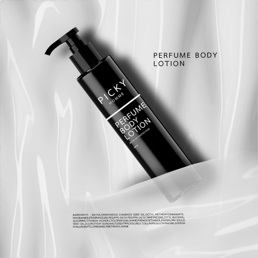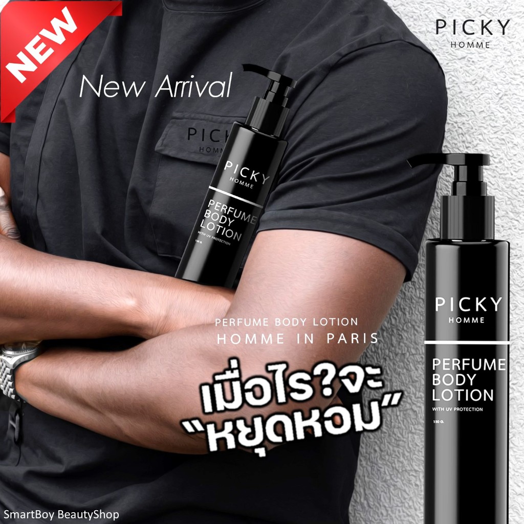 PICKY HOMME PERFUME BODY LOTION WITH UV PROTECTION 150mlโลชั่นน้ำหอมบำรุงผิวกายสำหรับผู้ชายกลิ่นหอมแนวสปอร์ตสุดพิเศษ