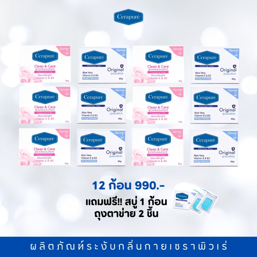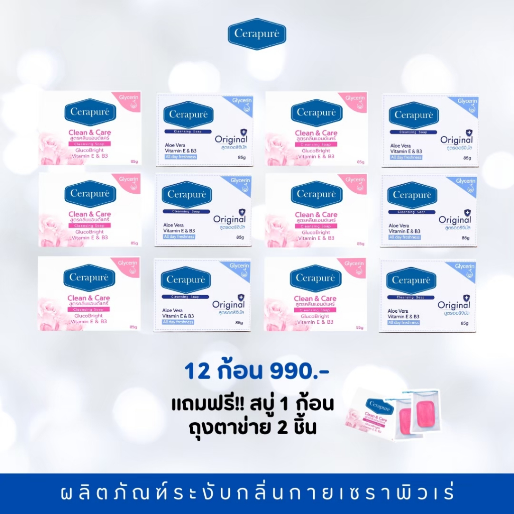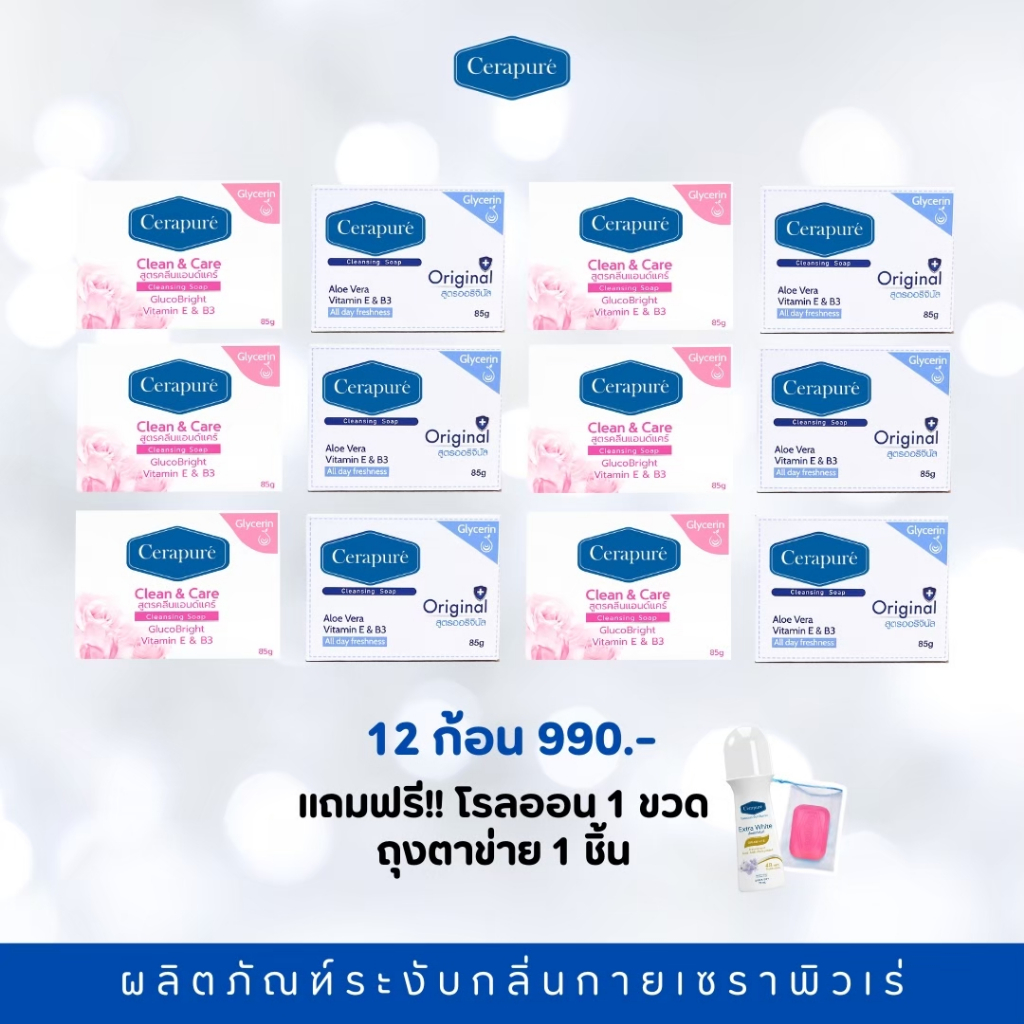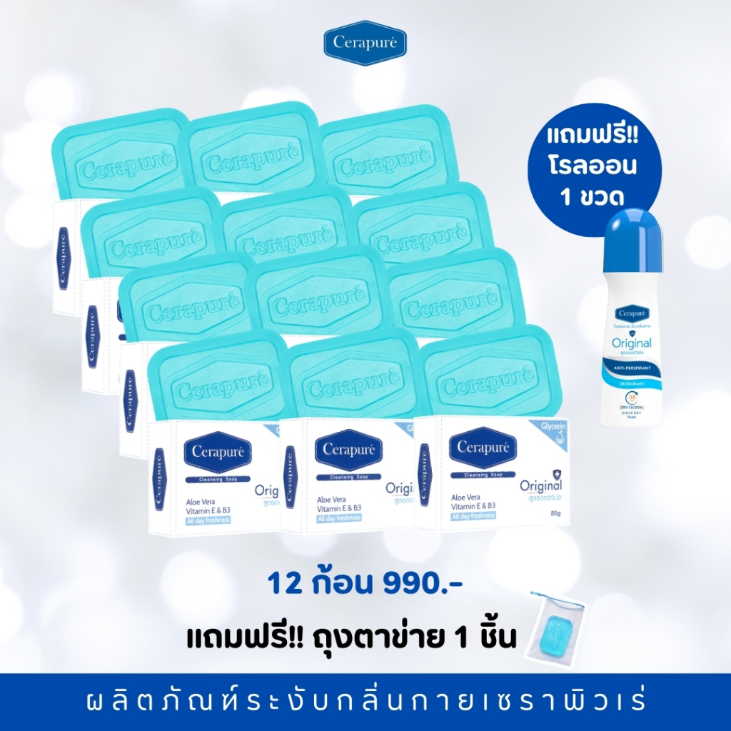 Cerapure ชุดสบู่ก้ อนดับกลิ่นกายเซราพิวเร่ 12ก้อน