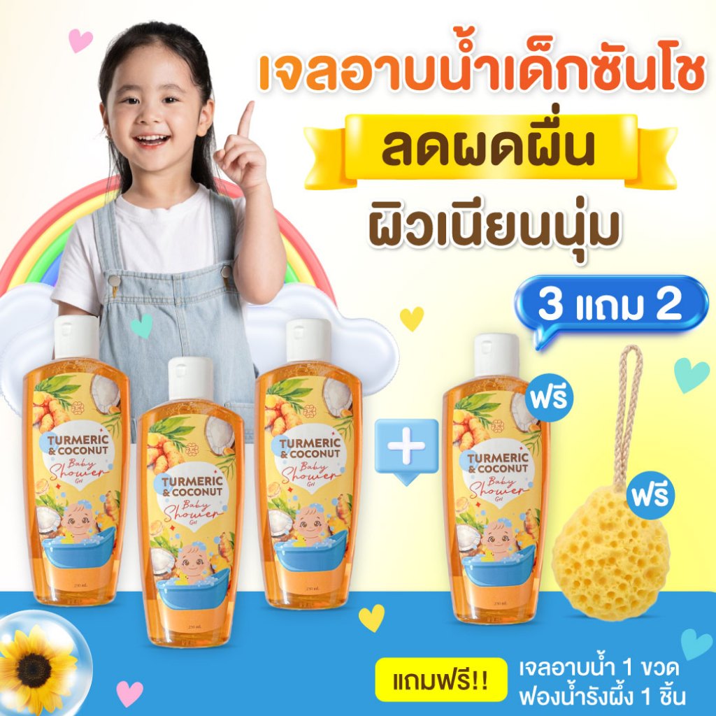 สบู่เหลวเด็กซันโช สูตรลดผดผื่น คัน ผิวชุ่มชื้น หอมอ่อนโยน เหมาะกับผิวแพ้ง่าย พร้อมส่งฟรี