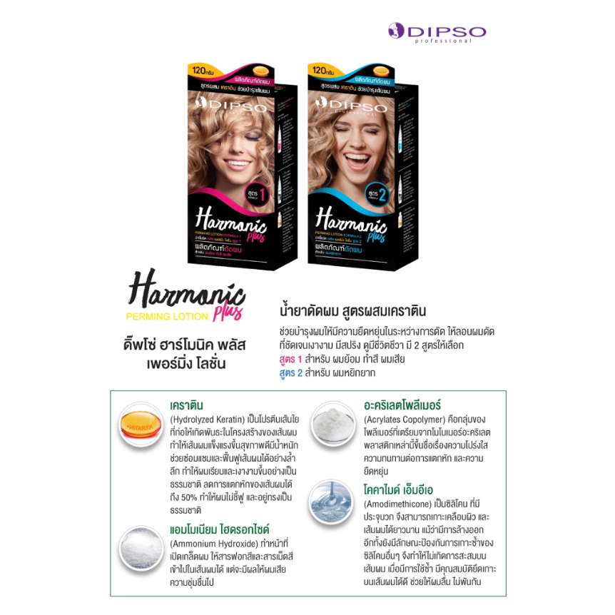 【พร้อมส่ง】น้ำยาดัดผม ฮาโมนิคผสมเคราติน Dipso ดัดเย็น 120 มล. มีให้เลือก 2 สูตร