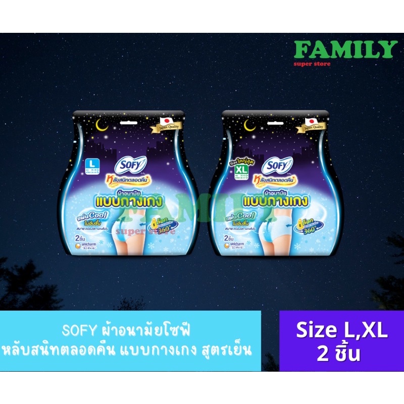 Sofy โซฟี ผ้าอนามัย กลางคืน แบบกางเกง คูล แอล size L,XL(2ชิ้น)