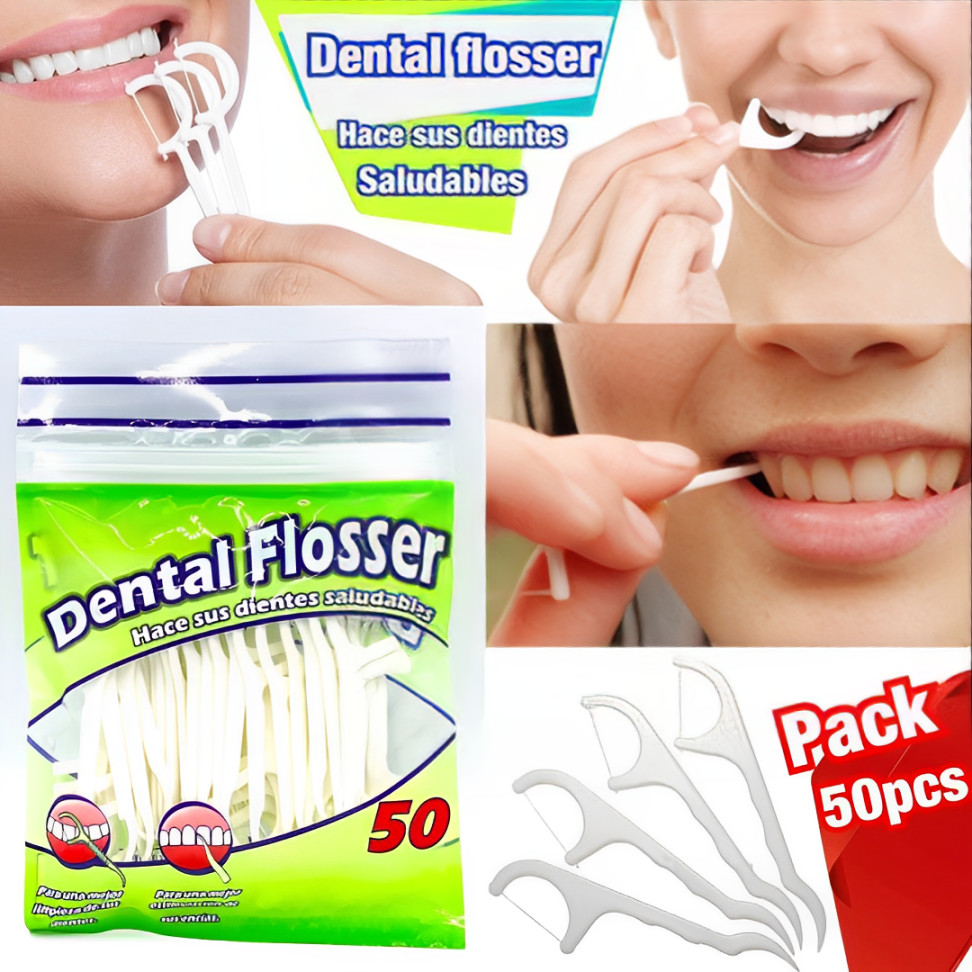 🦷ฟันสะอาดง่ายๆ ด้วย Dental Flosser ไหมขัดฟัน และไม้จิ้มฟัน ( 1 ถุง บรรจุ 50 ชิ้น )