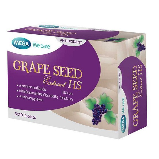 Mega We Care Grape Seed Extract HS 30sผลิตภัณฑ์เสริมอาหารสารสกัดจากเมล็ดองุ่น 1 กล่อง