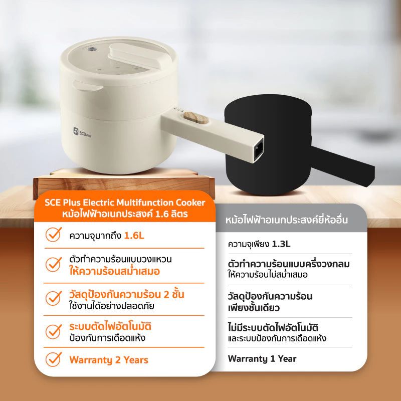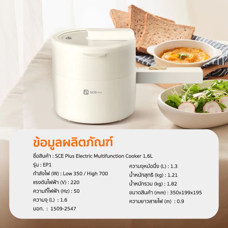 SCE Plus หม้อไฟฟ้า 1.6 ลิตร รุ่น EP1 + หม้อนึ่ง 1.3 ลิตร ทำอาหารอเนกประสงค์ ต้ม ผัด ตุ๋น ครบเครื่อง🔥🍳