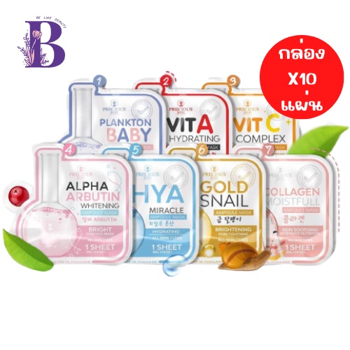 (กล่องX10แผ่น) Precious Skin (Ampoule Mask) แอมเพิล มาส์ก มี7สูตร 30กรัมx10แผ่น