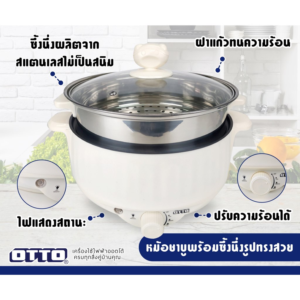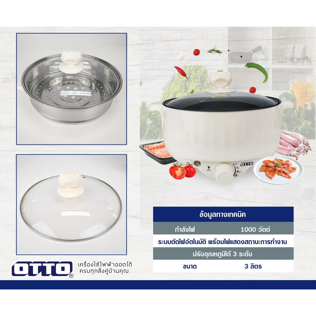 OTTO กระทะไฟฟ้า มีหม้อนึ่ง รุ่น SP-314G ขนาด 3 ลิตร