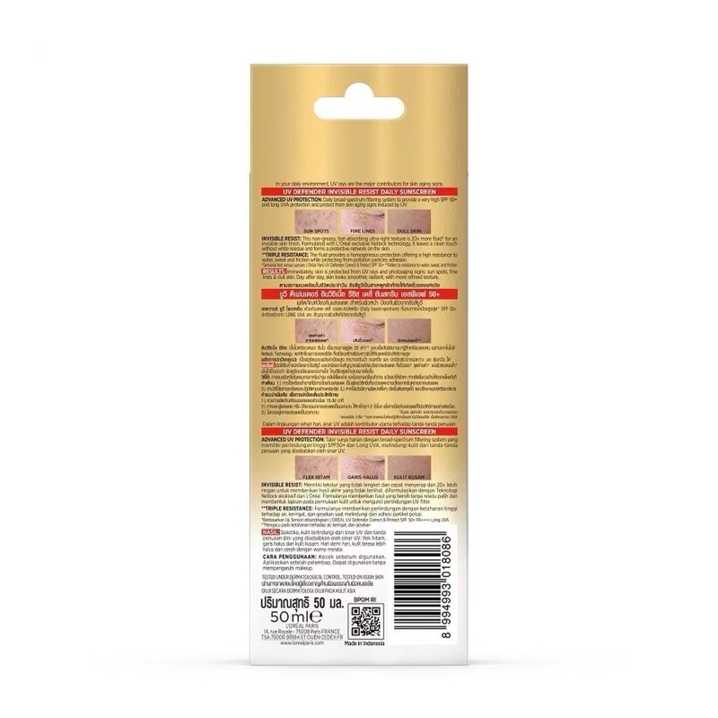 ✅ L'Oreal Paris UV Defender Invisible Resist 50ml ลอรีอัล ปารีส ยูวี ดีเฟนเดอร์ อินวิซิเบิ้ล รีซิส 50มล ครีมกันแดด