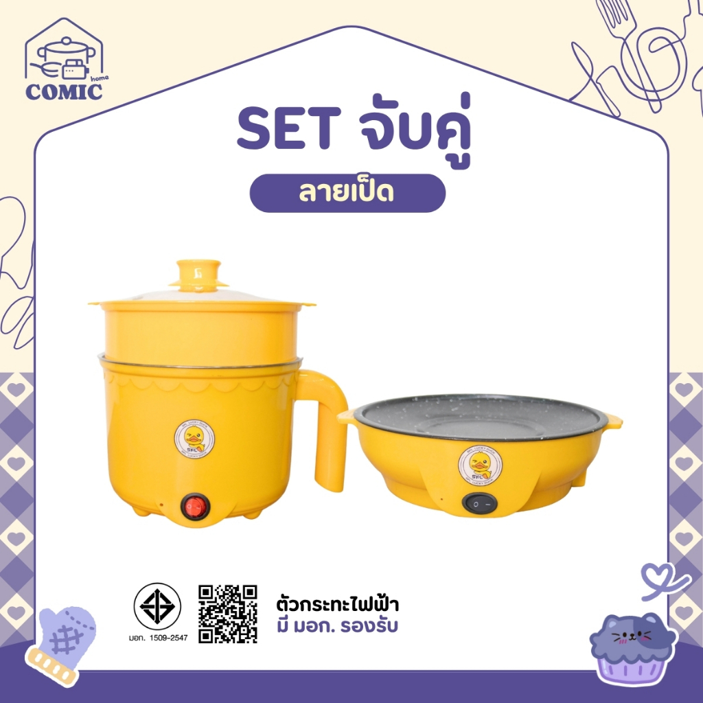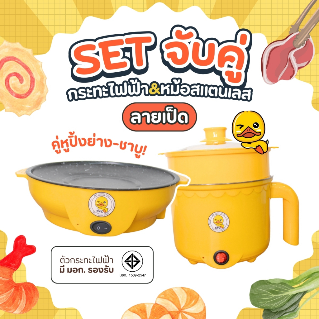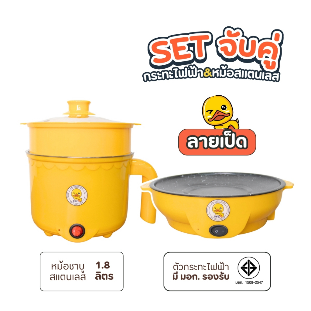 ขายดี! เซตคู่ หม้อ+กระทะ ลายเป็ด ได้2ชิ้น หม้ออเนกประสงค์ กระทะมินิ เตาปิ้งย่างไฟฟ้า หม้อสุกี้ กระทะย่างเนย หม้อมาม่า