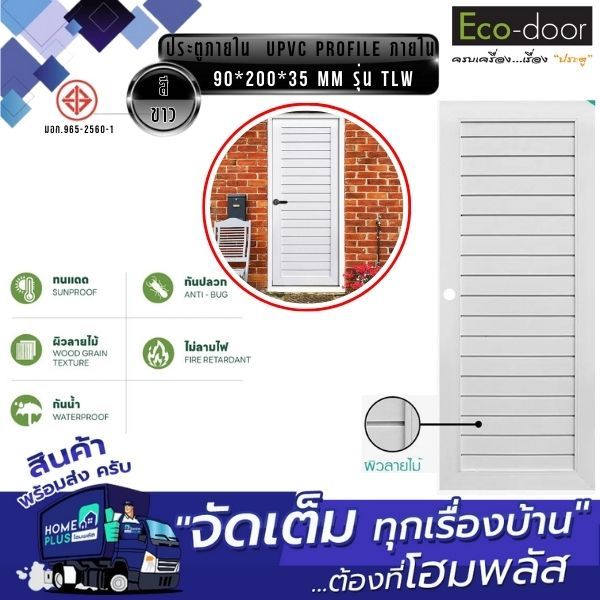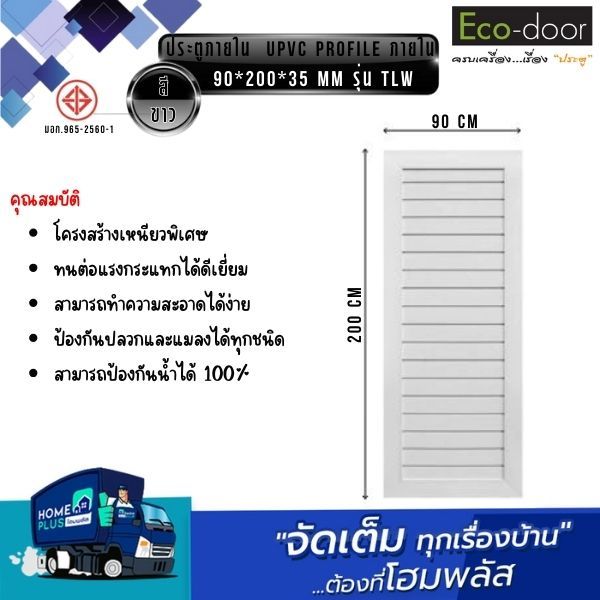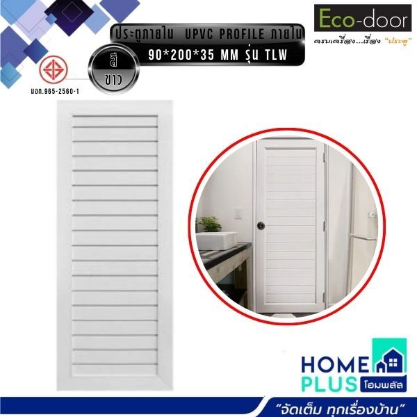 ประตู UPVC PROFILE ภายใน 90*200*35 mm. รุ่น TLW สีขาว (แบบเจาะลูกบิด) ECO-DOOR