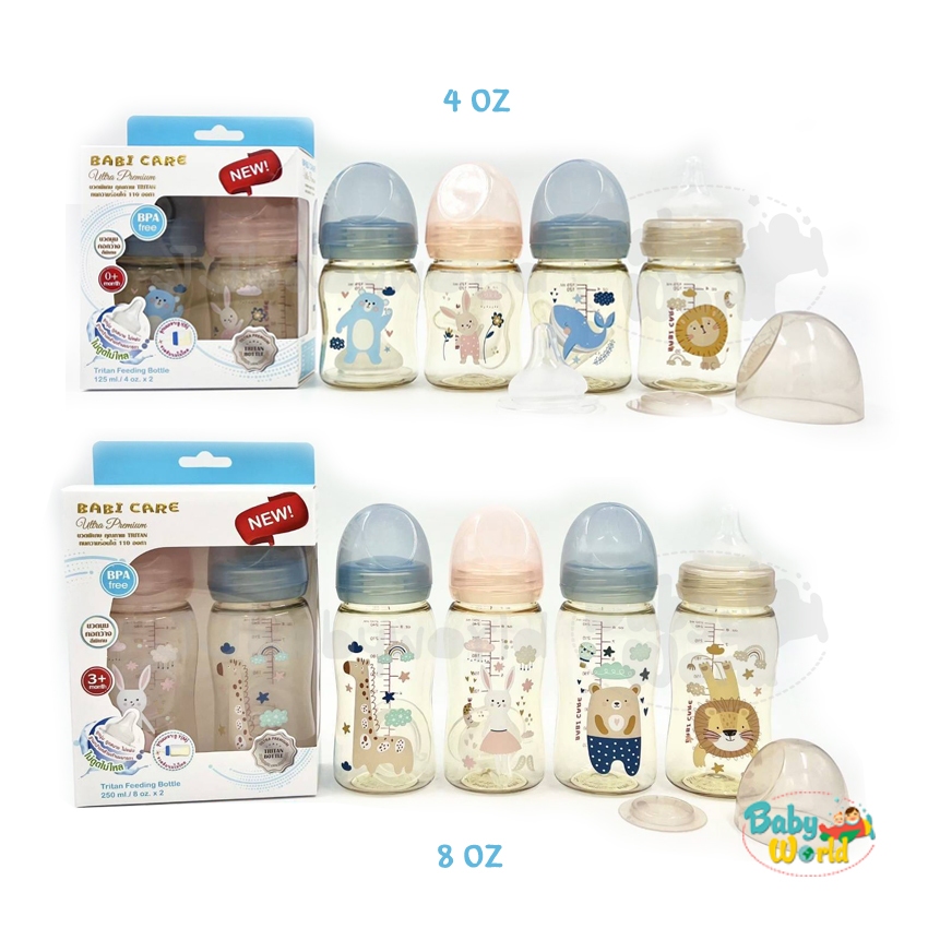 ขวดนม Babi Care Ultra Premium Tritan 4 / 8 ออนซ์ คอกว้าง (แพค 2) ลายการ์ตูน