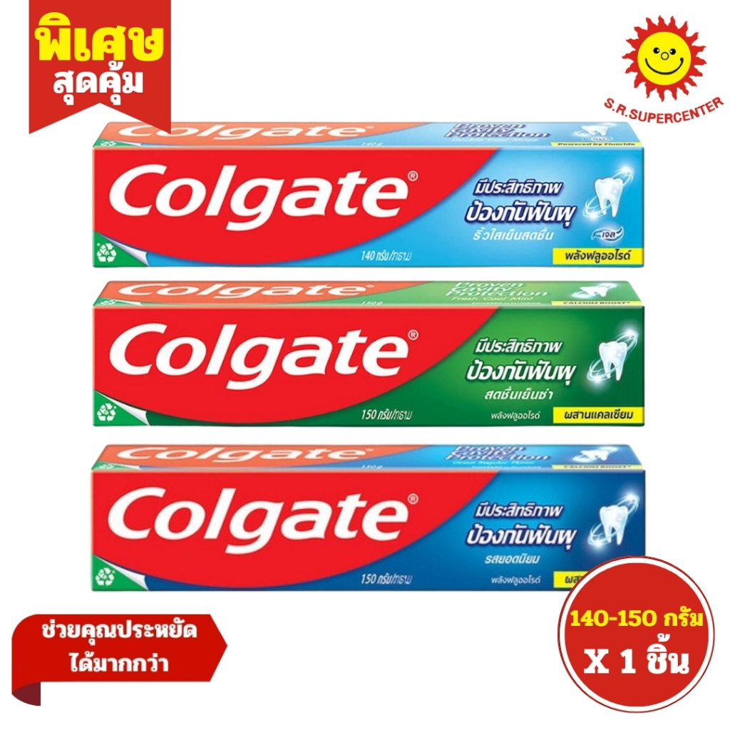 [ 1ชิ้น ] Colgate คอลเกต ยาสีฟันป้องกันฟันผุ /สูตรเกลือ ขนาด 140-150 กรัม (1หลอด) คละสูตร