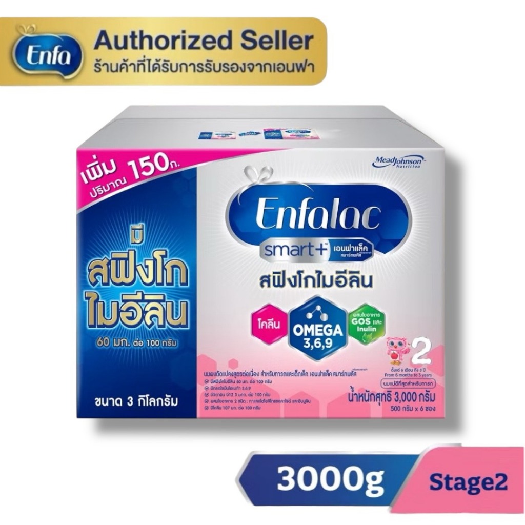 Enfalac Smart+2 เอนฟาแล็ค สมาร์ทพลัส นมผงดัดแปลงสำหรับทารก สูตร 2 ขนาด 3000 กรัม (1 กล่อง) MG