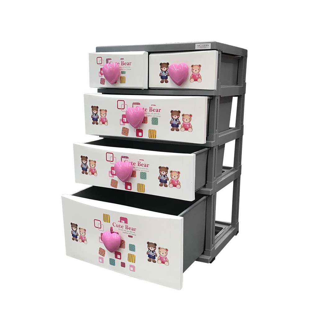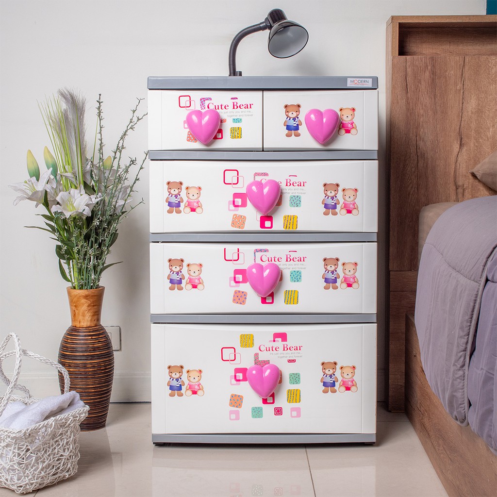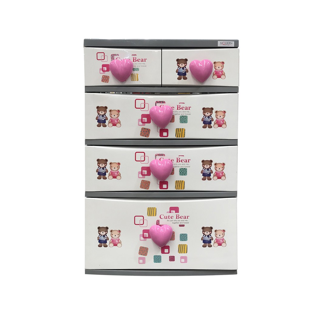 MODERN ตู้ลิ้นชักพลาสติก 4 ชั้น หัวใจ ลายหมี (ไม่รวมประกอบ) |EA|