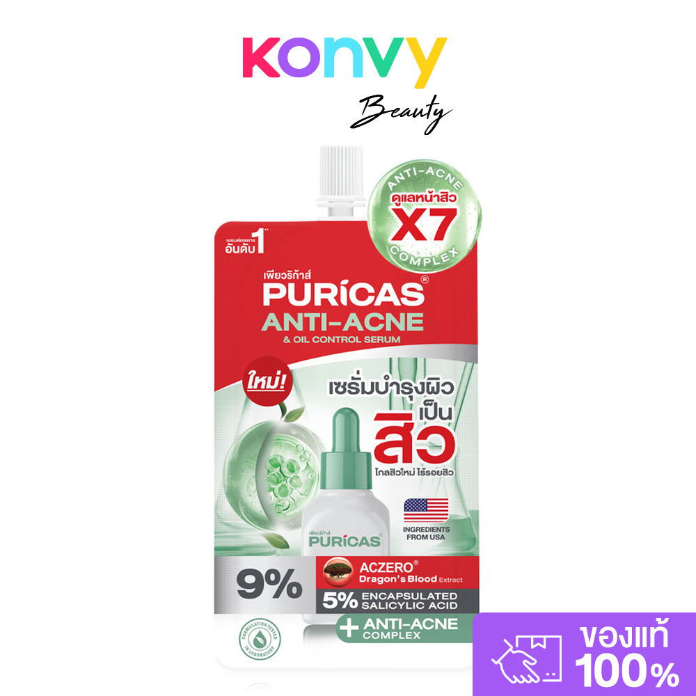 Puricas Anti Acne And Oil Control Serum Sachet 7ml เซรั่มลดเลือนรอยสิว แบบซอง.