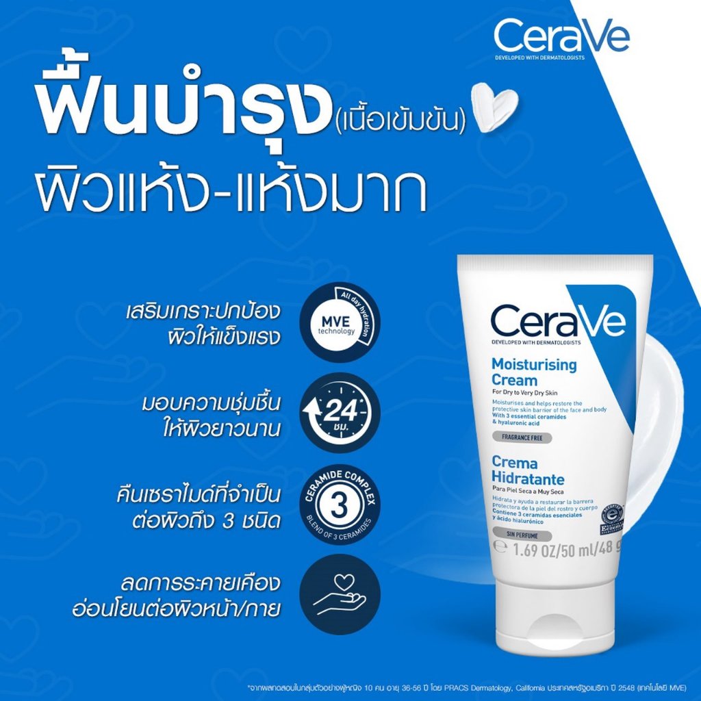 เซราวี CERAVE MOISTUR CREAM 50 ML ครีมมอยเจอร์ไรเซอร์ บำรุงหิวหน้าและผิวกาย 50 ml. | สำหรับผิวแห้งมาก