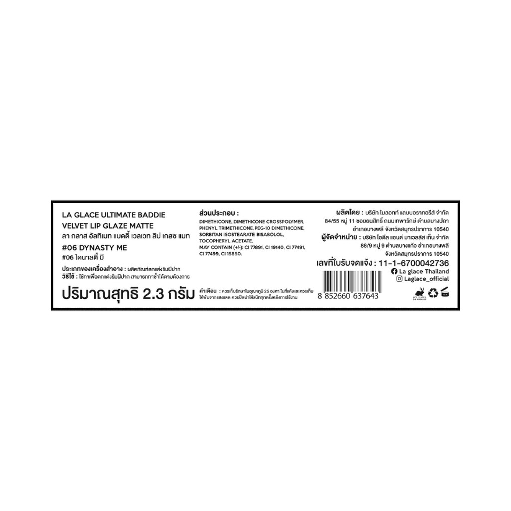 LA GLACE ลา กลาส อัลติเมท แบดดี้ เวลเวท ลิป กลาส แมท 2.3ก. 06 ไดนาสตี้ มี
