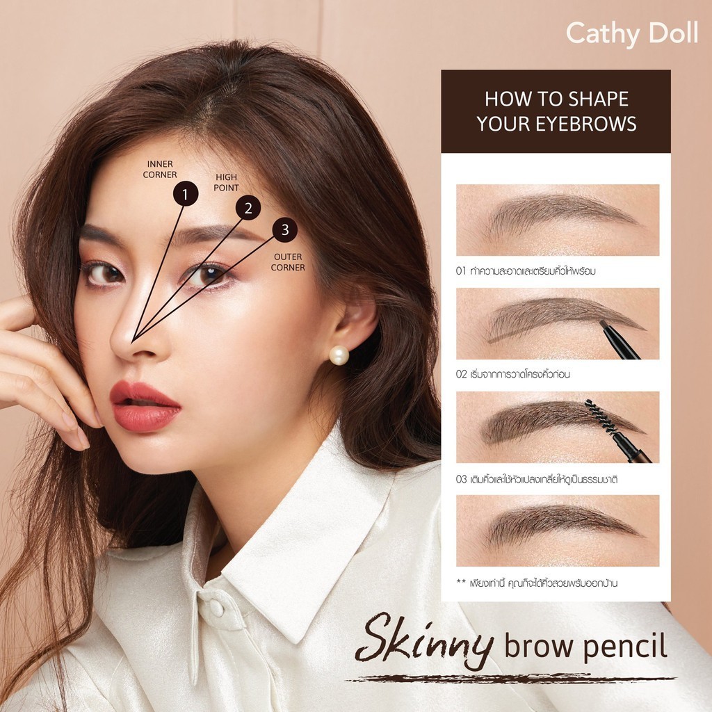 Cathy Doll Skinny Brow Pencil ดินสอเขียนคิ้ว คิ้วฟุ้งสวย สีละมุน กันน้ำ ติดทน มีหลายเฉดให้เลือก