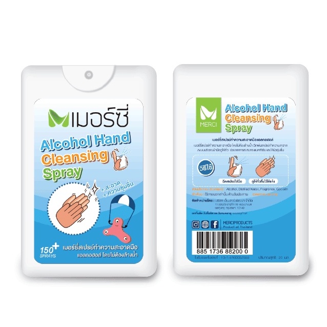 Merci Alcohol Hand Cleansing Spray เมอร์ซี่ สเปรย์แอลกอฮอล์ ทำความสะอาดมือ ขนาด 20 ml (17964)