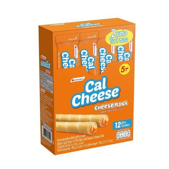 CalCheese Roll แคลชีส เวเฟอร์โรลสอดไส้ครีมรสชีส บรรจุ 12 ซอง