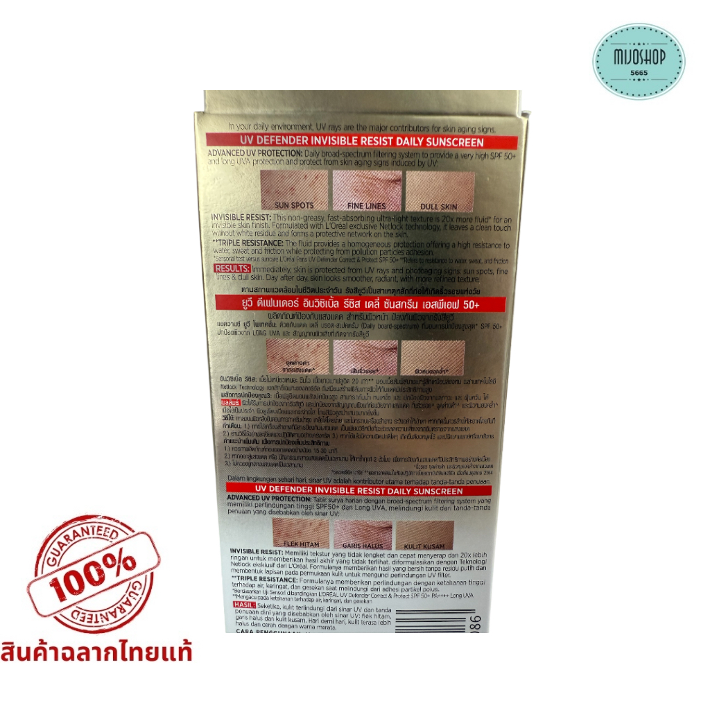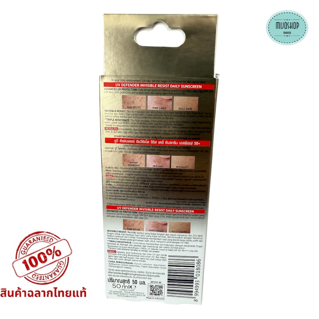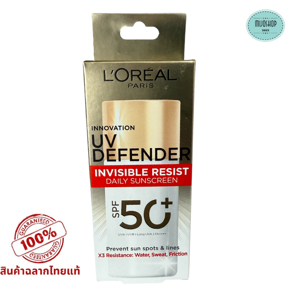 กันแดด ลอรีอัล UV Defender Invisible Resist SPF50+ PA++++ 50ml บางเบา เกลี่ยง่าย ไม่เหนอะหนะ