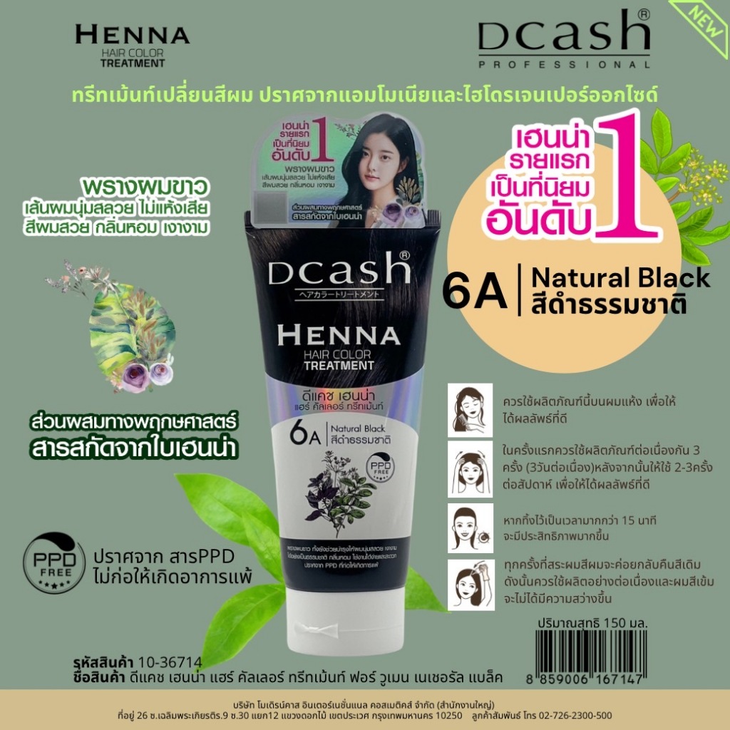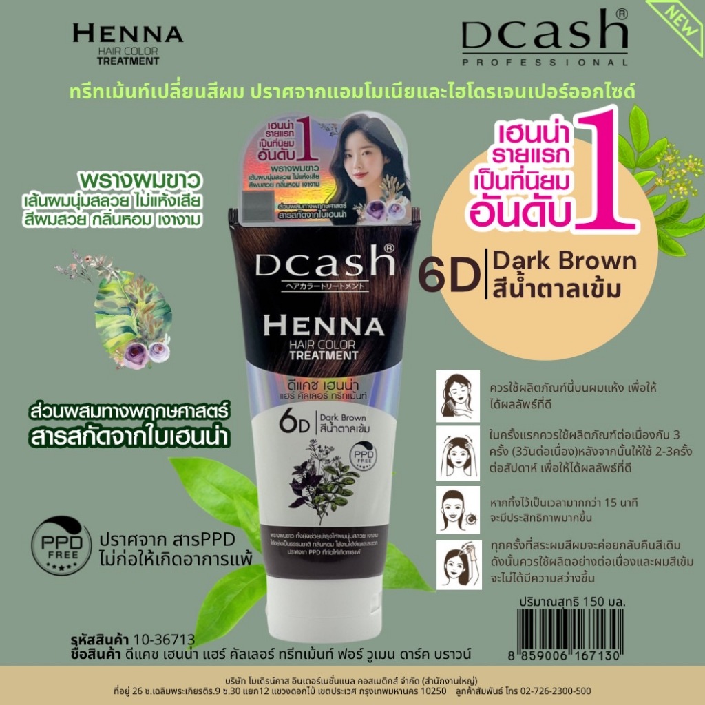 Dcash Henne Hair Color Treatment 150ml ดีแคช เฮนน่า แฮร์ คัลเลอร์ ทรีทเม้นท์ 150มล.