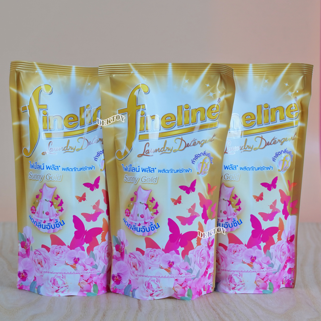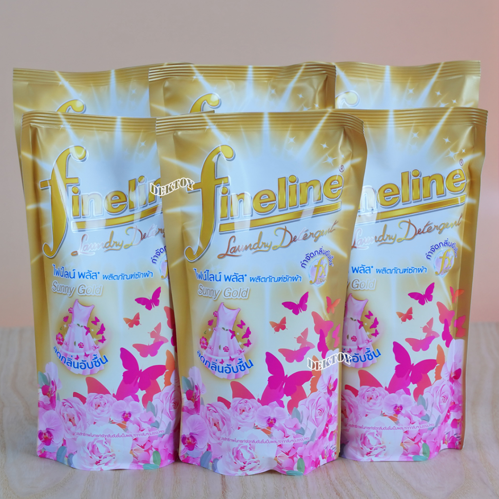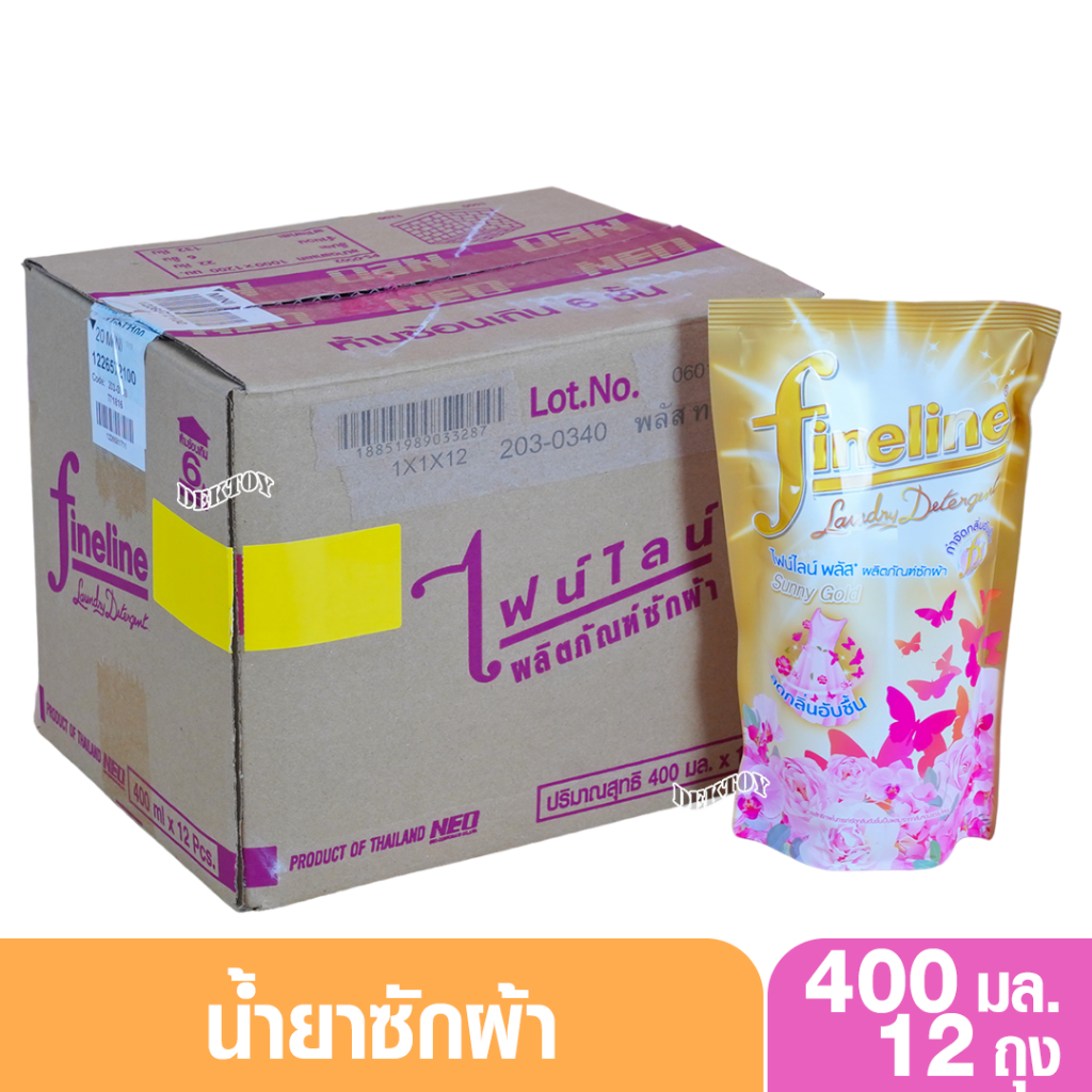 12 ถุง ยกลัง Fineline ไฟน์ไลน์พลัส น้ำยาซักผ้า สูตรลดกลิ่นอับชื้น ถุงสีทอง กลิ่นซันนี่โกลด์ ขนาด 400 มล.