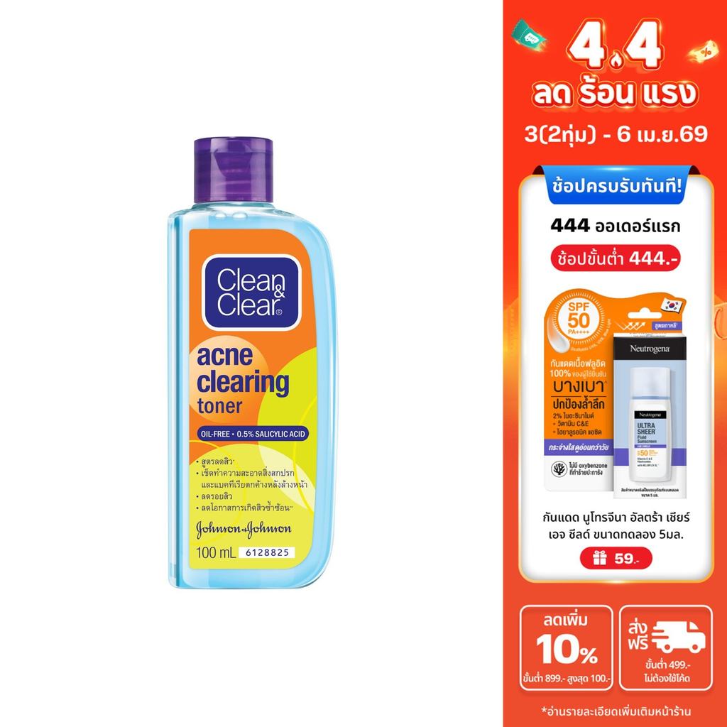 คลีน แอนด์ เคลียร์ แอคเน่ เคลียร์ริ่ง โทนเนอร์ 100 มล. Clean & Clear Acne Clearing Toner 100 ml.
