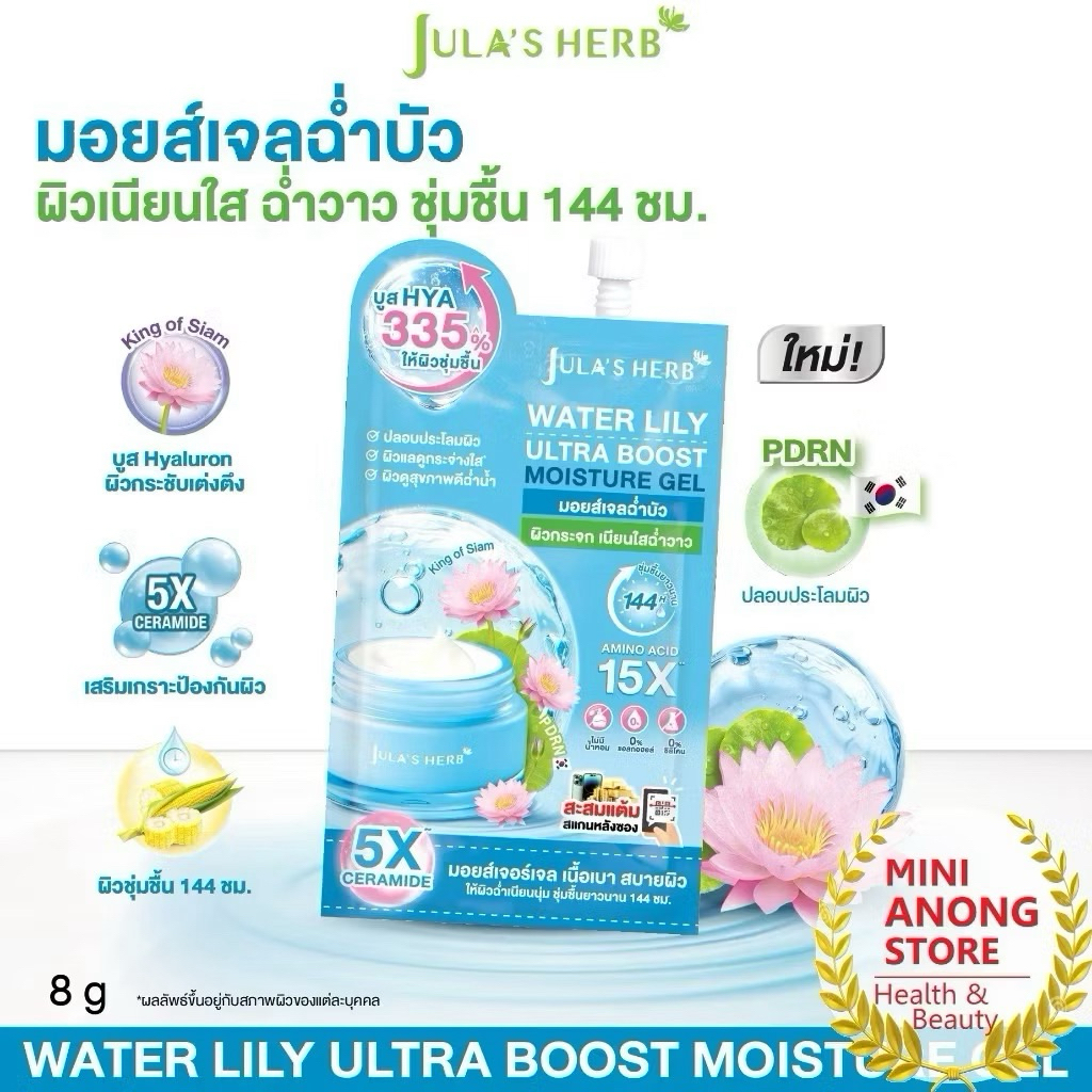 (กล่อง6ซอง) จุฬาเฮิร์บ มอยส์เจลฉ่ำบัว Jula's Herb Water Lily Ultra Boost Moisture Gel ฟื้นฟูผิว 8g.