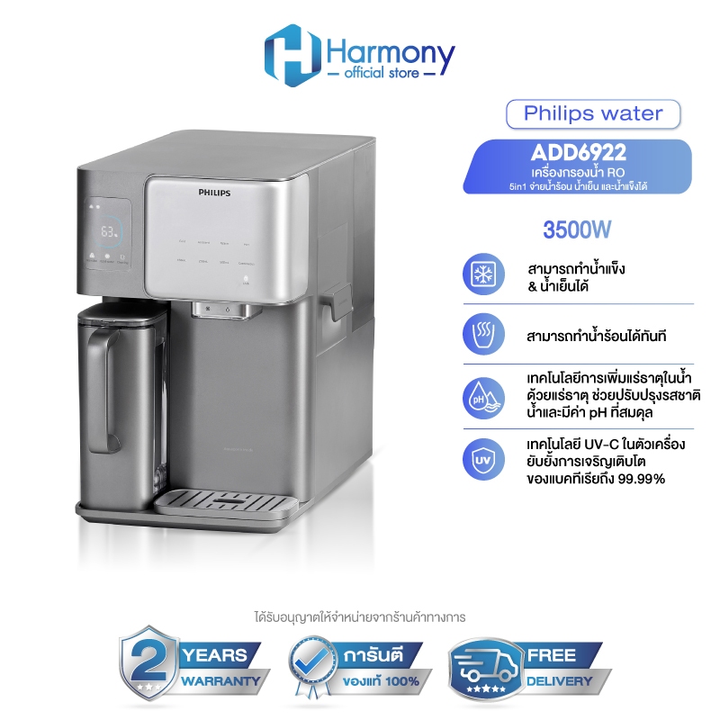 Philips Water ADD6922 เครื่องกรองน้ำ 5in1 ทำน้ำร้อน น้ำเย็น น้ำแข็ง กรองระบบ RO + UV-C LED มี TDS อ ยู่ในตัว