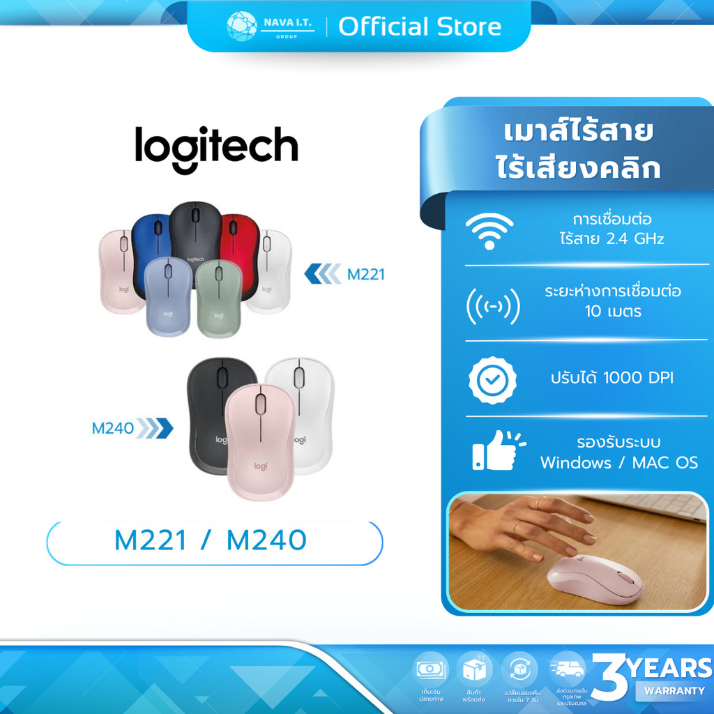 (มีส่งด่วน) LOGITECH M221 M240 SILENT BLUETOOTH MOUSE CORDLESS WIRELESS เม้าส์ไร้สายไร้เสียงคลิก