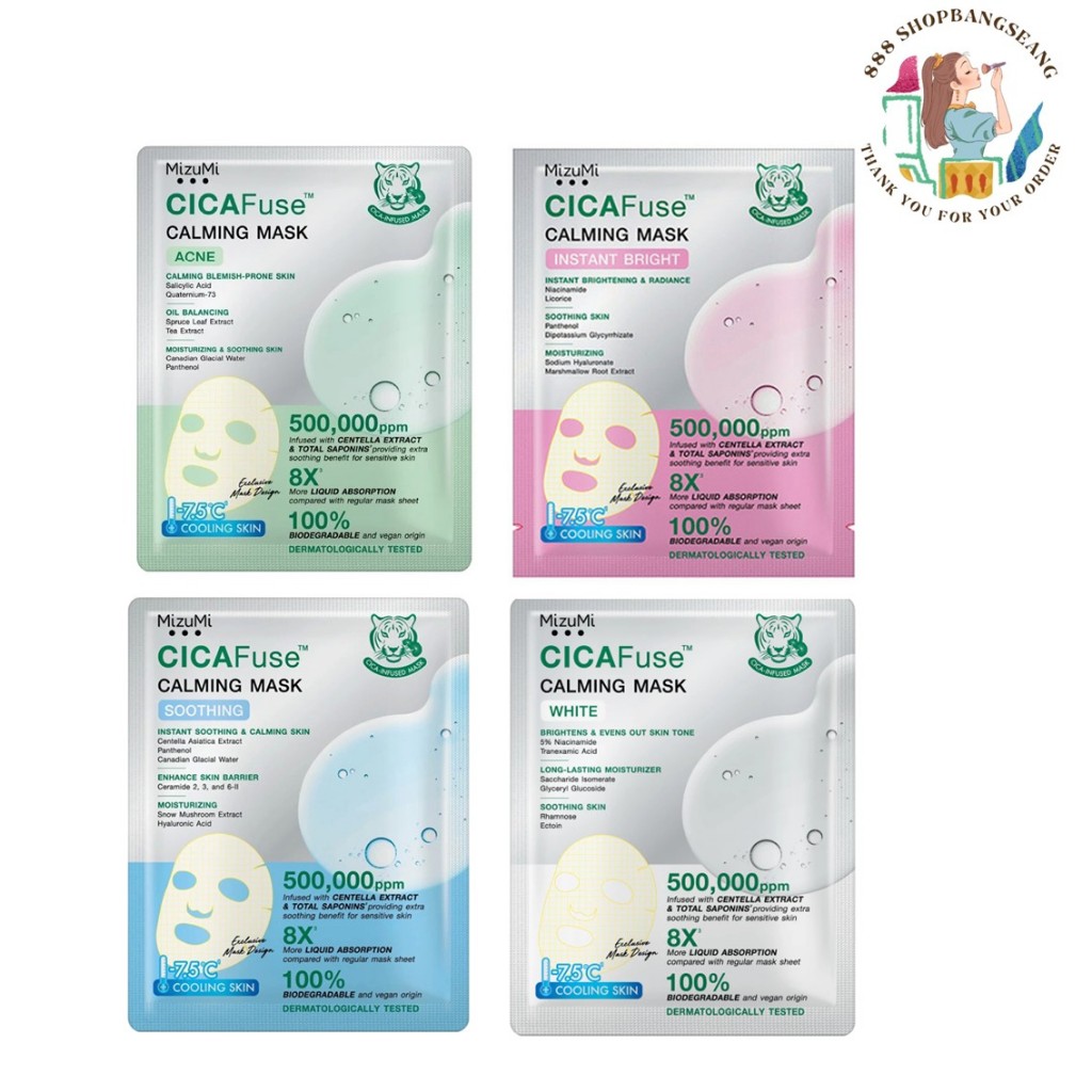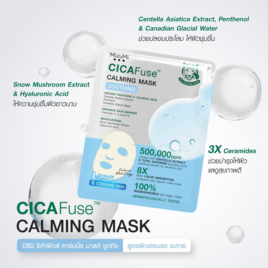 (1 ซอง) มาส์กหน้าซิก้าฟิวส์ มิซึมิ ซิก้าฟิวส์ คาร์มมิ่ง MizuMi CICAFuse Calming Mask Acne 30ml