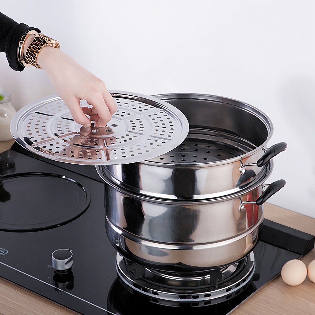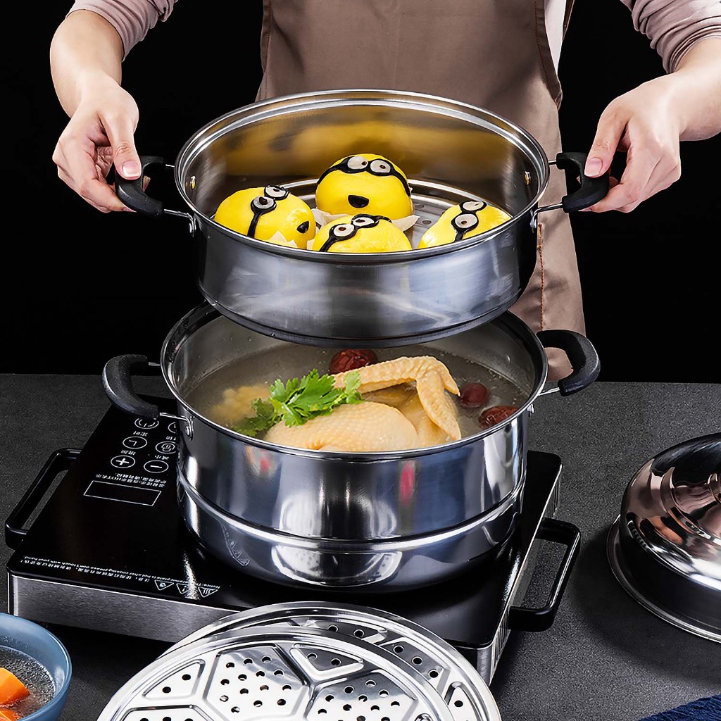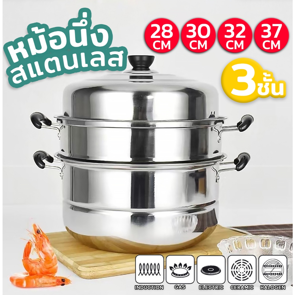 หม้อนึ่งฝาสูง 2/3ชั้น ขนาด28cm. หม้อสแตนเลสอเนกประสงค์ ใช้กับเตาแม่เหล็กไฟฟ้าได้
