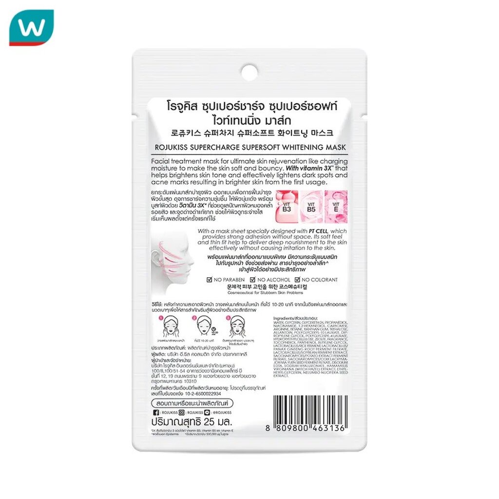 Rojukiss โรจูคิส ซุปเปอร์ชาร์จ ซุปเปอร์ซอฟท์ ไวท์เทนนิ่ง มาส์ก 1 แผ่น มาสก์หน้า ผิวหมองคล้ำ