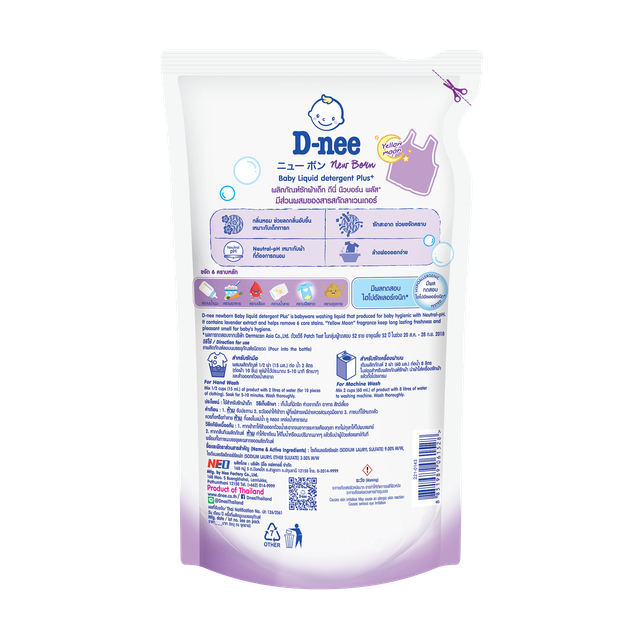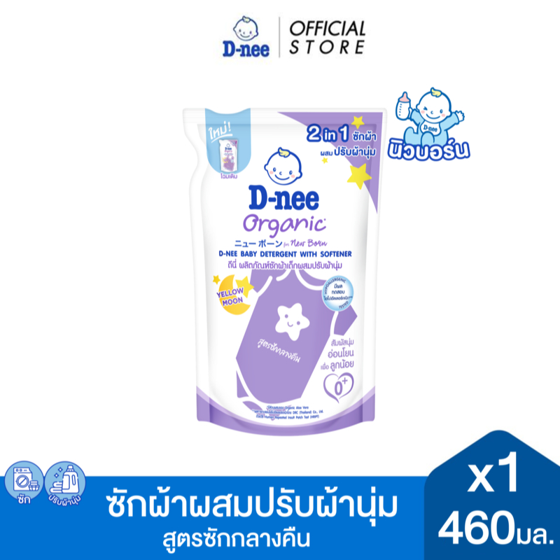 [ระหว่างเปลี่ยนแพ็คเกจ]D-nee ดีนี่ ผลิตภัณฑ์ซักผ้าเด็กผสมปรับผ้านุ่ม 2in1 กลิ่น Yellow Moon สูตรซักกลางคืน ถุงเติม460มล