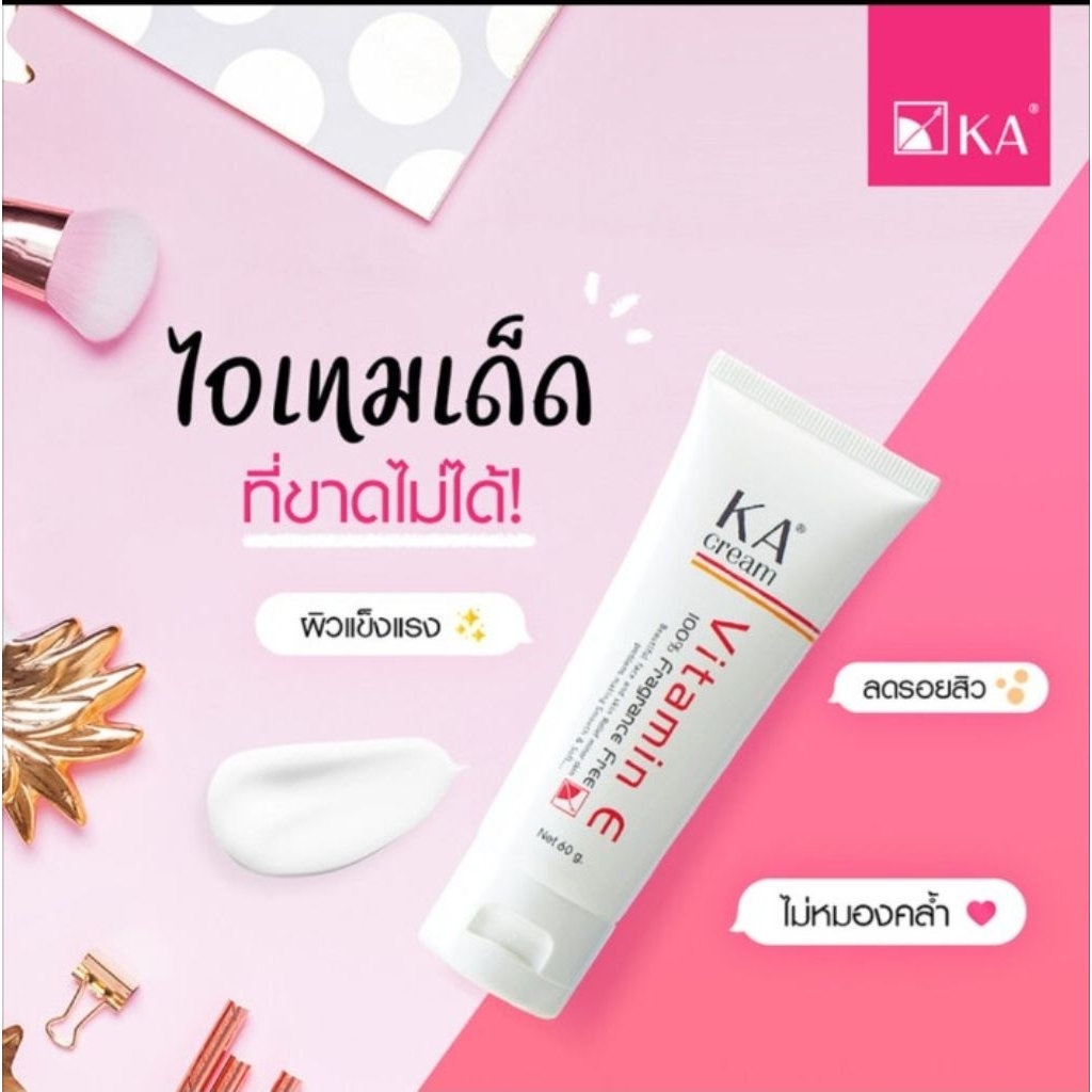 KA Cream Vitamin E ผิวแข็งแรง ลดรอยสิว ผิวชุ่มชื้น ขนาด15g./30g. /60g.