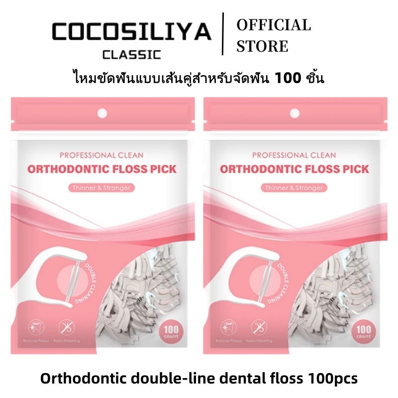 COCOSILIYA ไหมขัดฟันนุ่มพกพา + แท่งลวดคู่สำหรับจัดฟัน 100ชิ้น ไหมขัดฟัน ไหมขัดฟันแบบพกพา สะอาดสดชื่นปกป้องฟัน