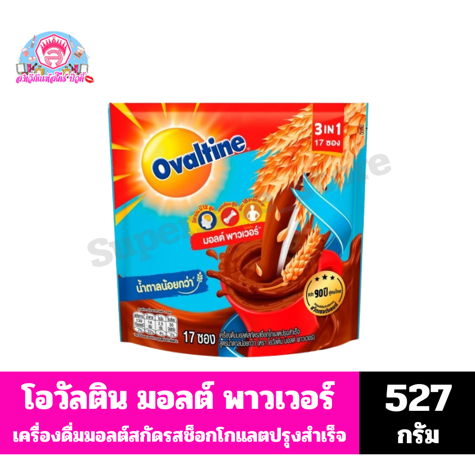 โอวัลติน มอลต์ พาวเวอร์ เครื่องดื่มมอลต์สกัดรสช็อกโกแลตปรุงสำเร็จ สูตรน้ำตาลน้อย ขนาด 527 กรัม(31กรัมx17ซอง)