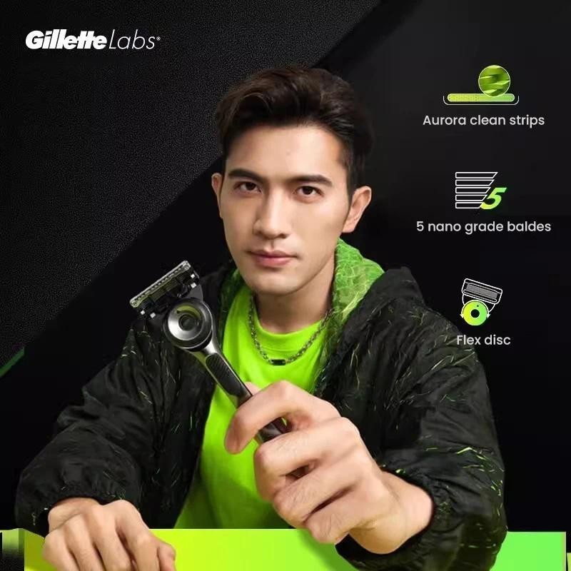Gillette Labs มีดโกน Aurora Series Flexdisc ใบมีดเหนี่ยวนํา 5 ชั้น Sharp เคราโกนหนวดมีดโกนสําหรับผู้ชายพร้อมขาตั้ง NBA Gold