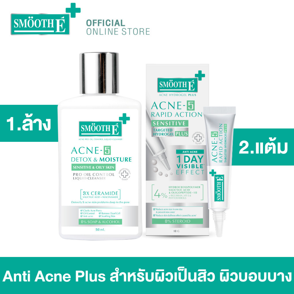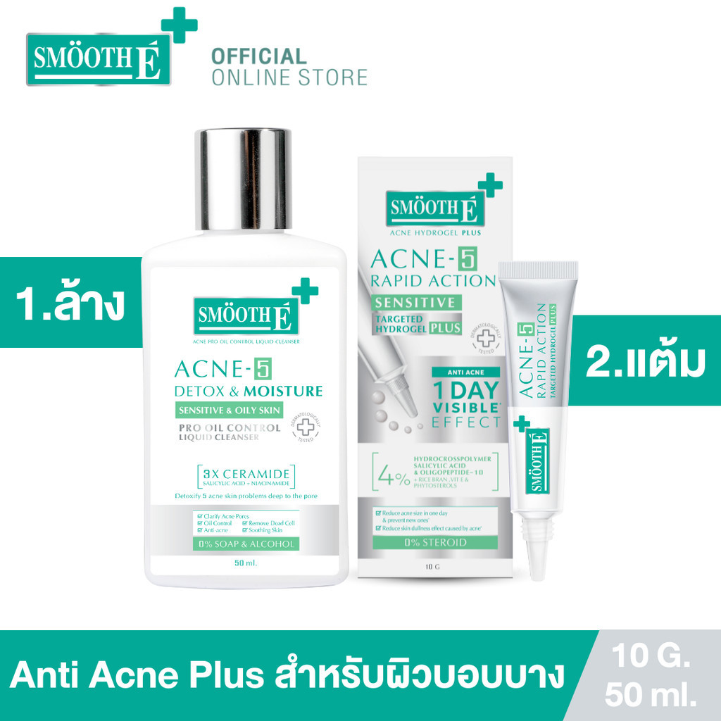 Smooth E Anti Acne Rapid Plus Set สำหรับผิวมันเป็นสิว ผิวแพ้ง่าย ลดรอยดำ รอยแดง สิวอักเสบอุดตัน ปราศจากสเตียรอยด์