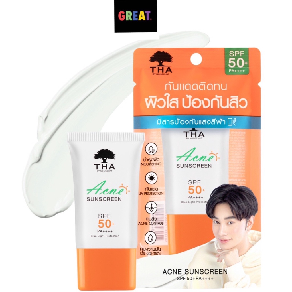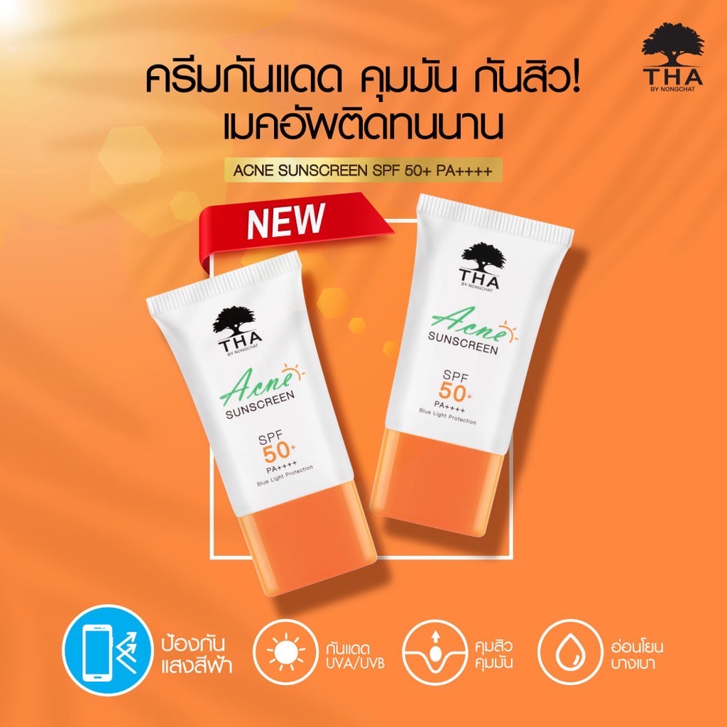 กันแดดน้องฉัตร THA Acne Sunscreen ฑาบายน้องฉัตร กันแดด น้องฉัตร ติดทน 15g THA Acne Sunscreen SPF50 PA++++